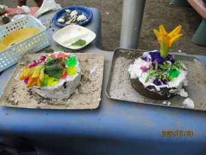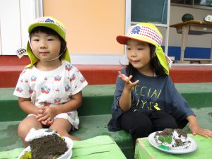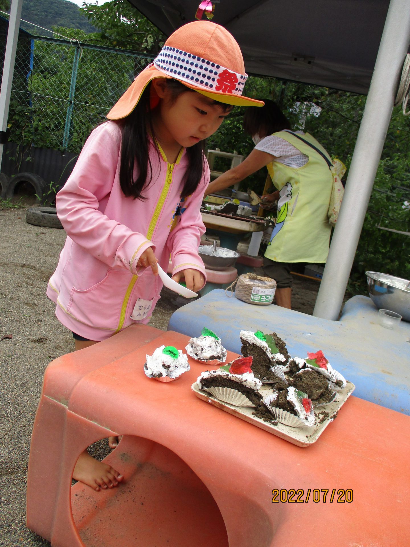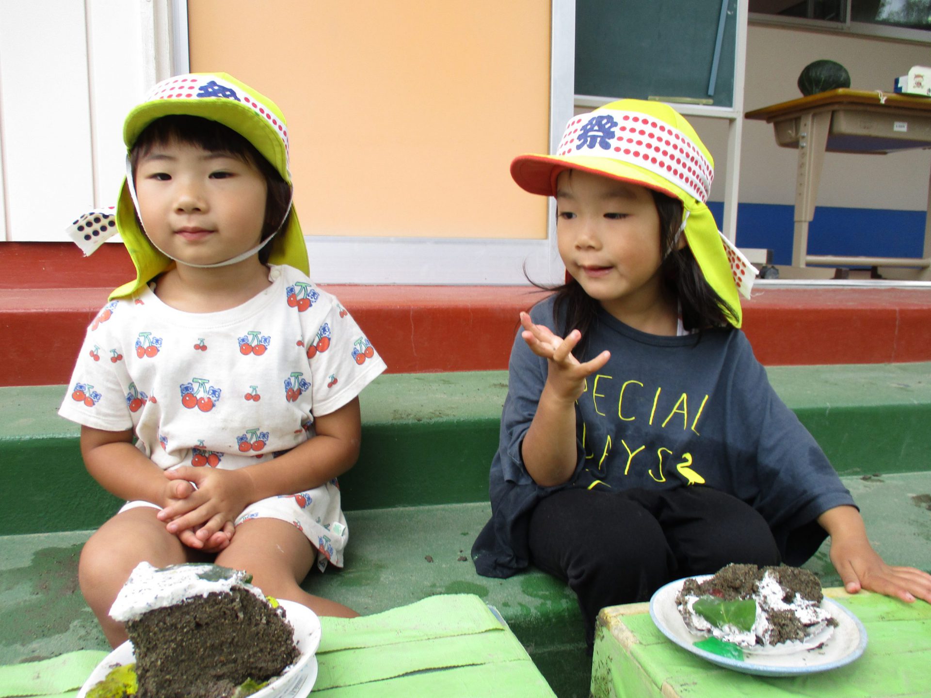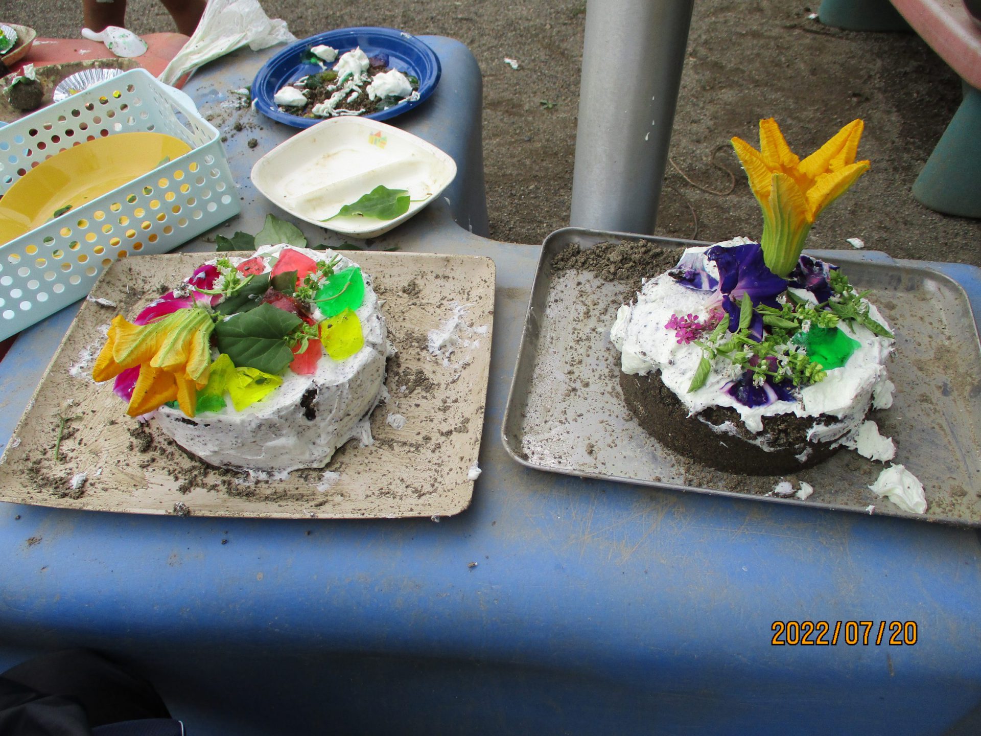 保育園の庭にあるもので、こんなに素敵なホールケーキが作れるよ!