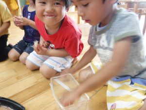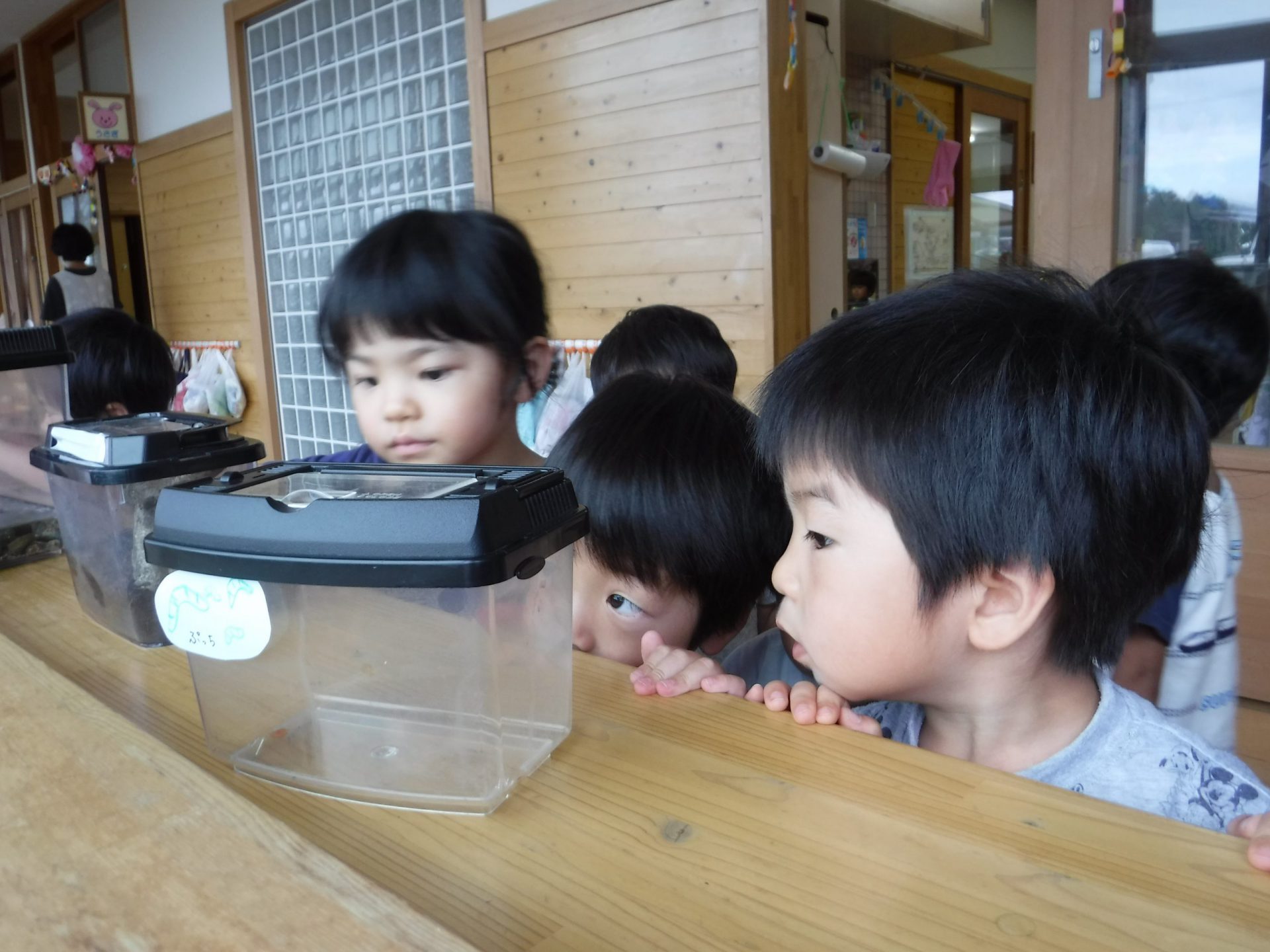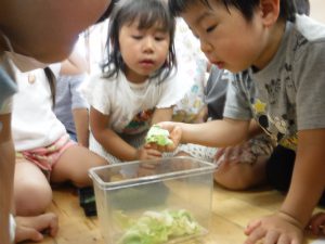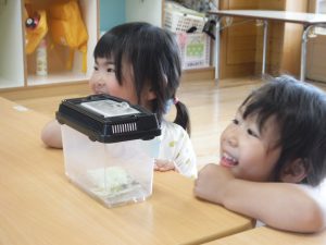 今回は当番のお友達が代表して飼育ケースの蓋を開けてくれました。