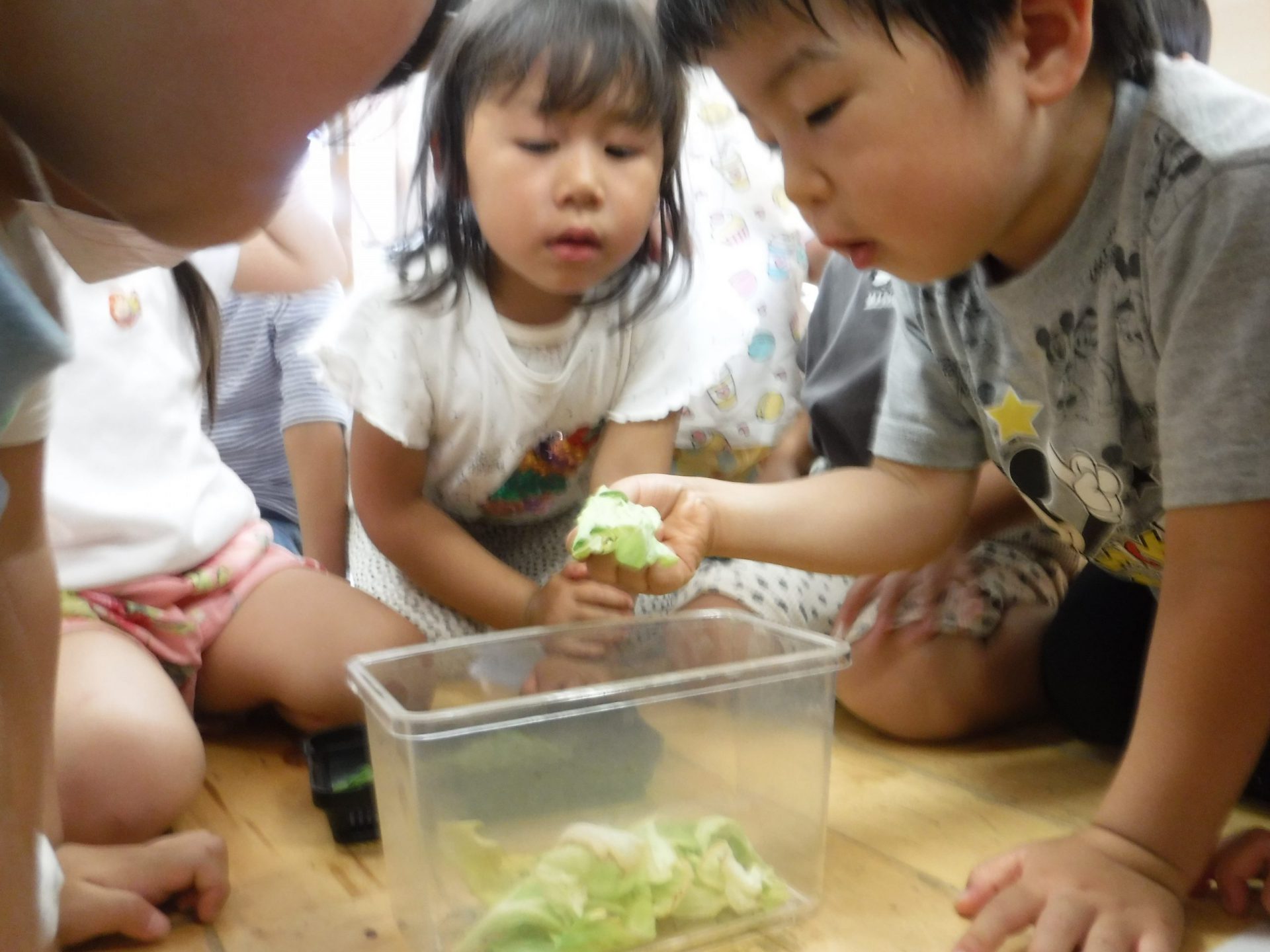 最初は「はらぺこあおむし」と呼んでいた子ども達ですが「ぷっち」と名前をつけてかわいがるようになりました。