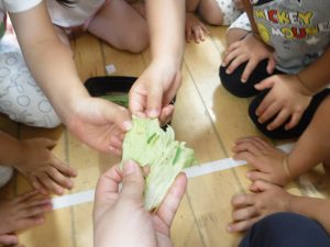 青虫がさなぎになり、ちょうちょになることを知っている子もいれば、知らない子もいましたが、