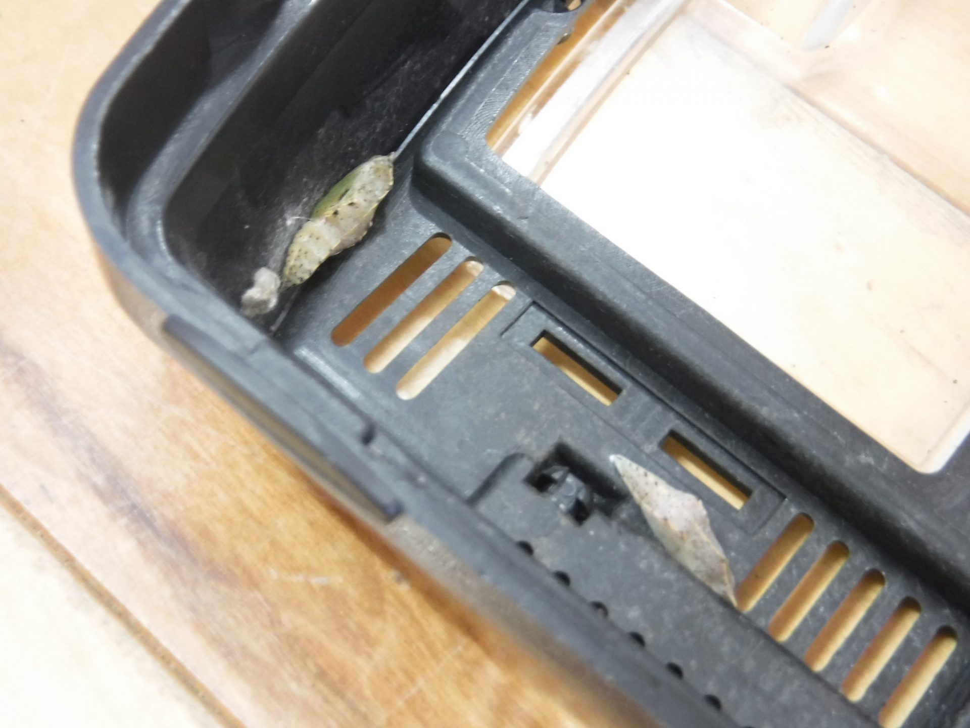 飼育ケースを開けてみるとビックリ!「さなぎになってる!」