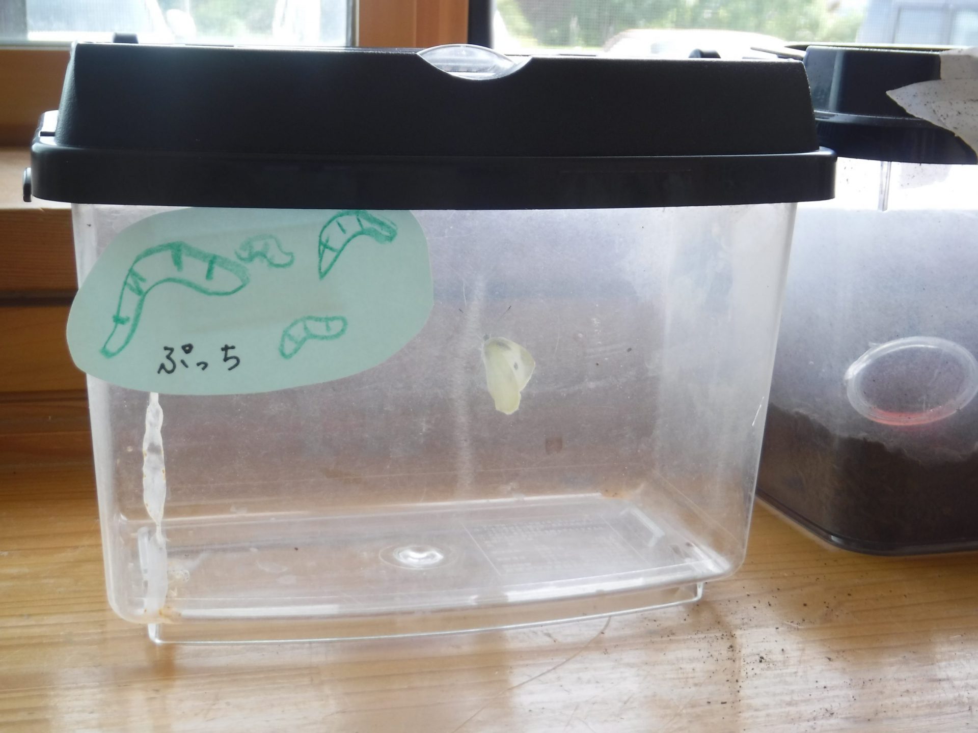 さなぎになり動かなくなったぷっちを見て「ぷっち寝てるね」と小さな声で観察。