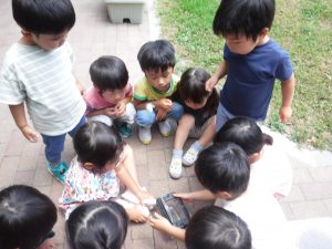 小動物探しが大好きな子ども達。青虫を飼い始めました。