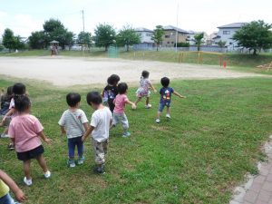 すると‥‥‥「わあ!ぷっちが出たー!」「待てー」と飛び出したぷっちの後を追いかけます。