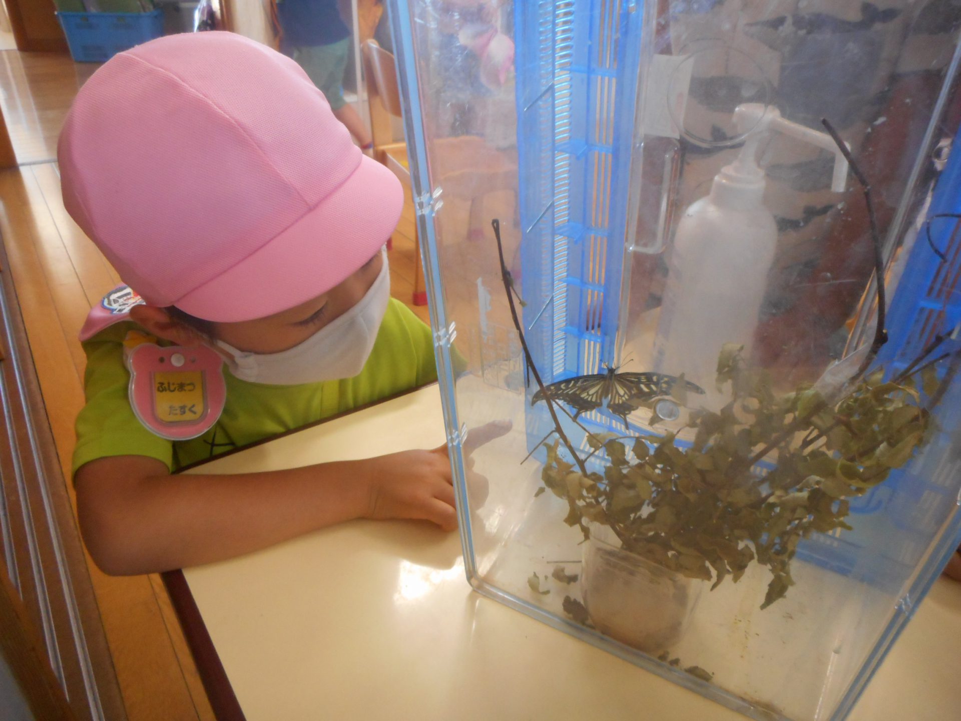 「あ!アゲハチョウになってる!!」と孵化した蝶を発見(^^)