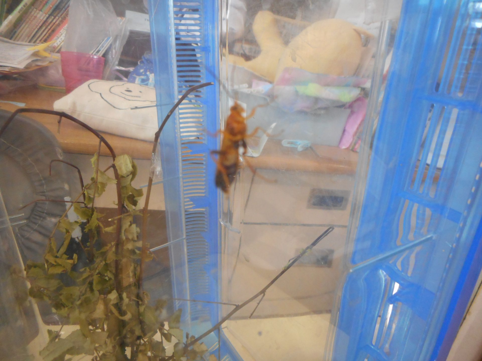 それから数日後、みどりちゃんのカゴの中にハチがいることに気づきました。