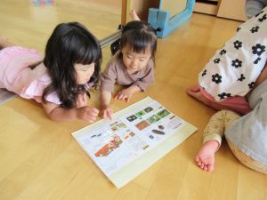 ♪きゃべつ〜のなかか〜ら 楽しそうに手遊びも始まりました。