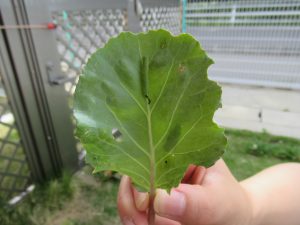 キャベツの葉っぱをよ〜く見ると・・・卵がついていました。