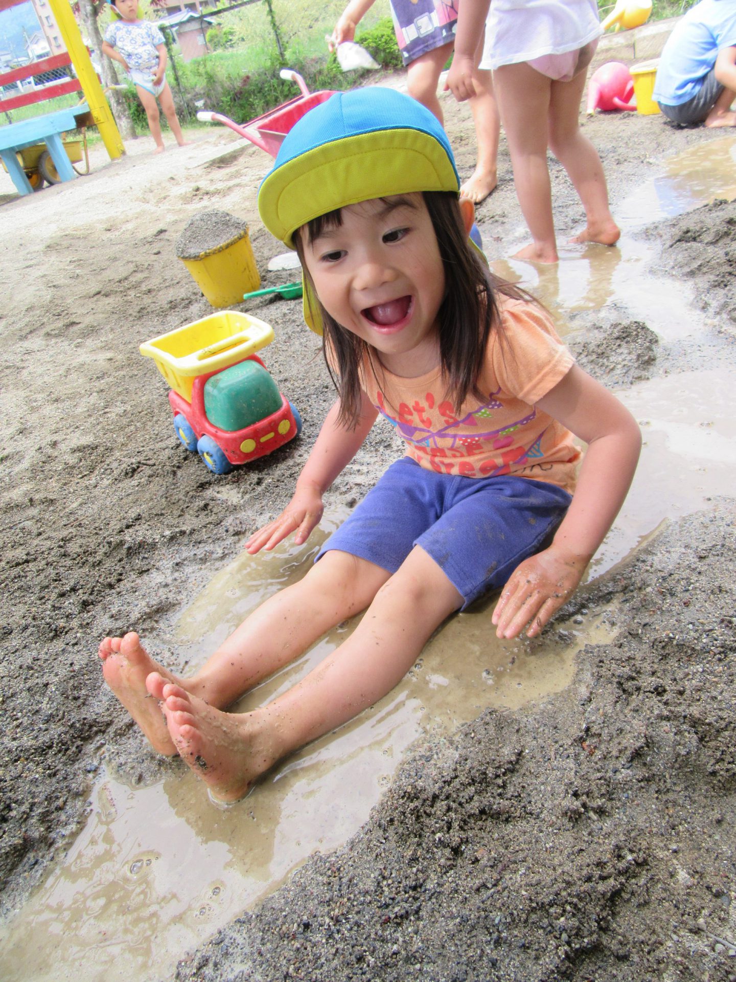 水にぬれるとか砂や泥で汚れることを気にすることなく水や砂、泥の感触を楽しんでほしい。