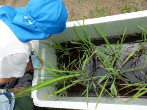 色水づくりをしながらも、横にあるミニ田んぼを見て