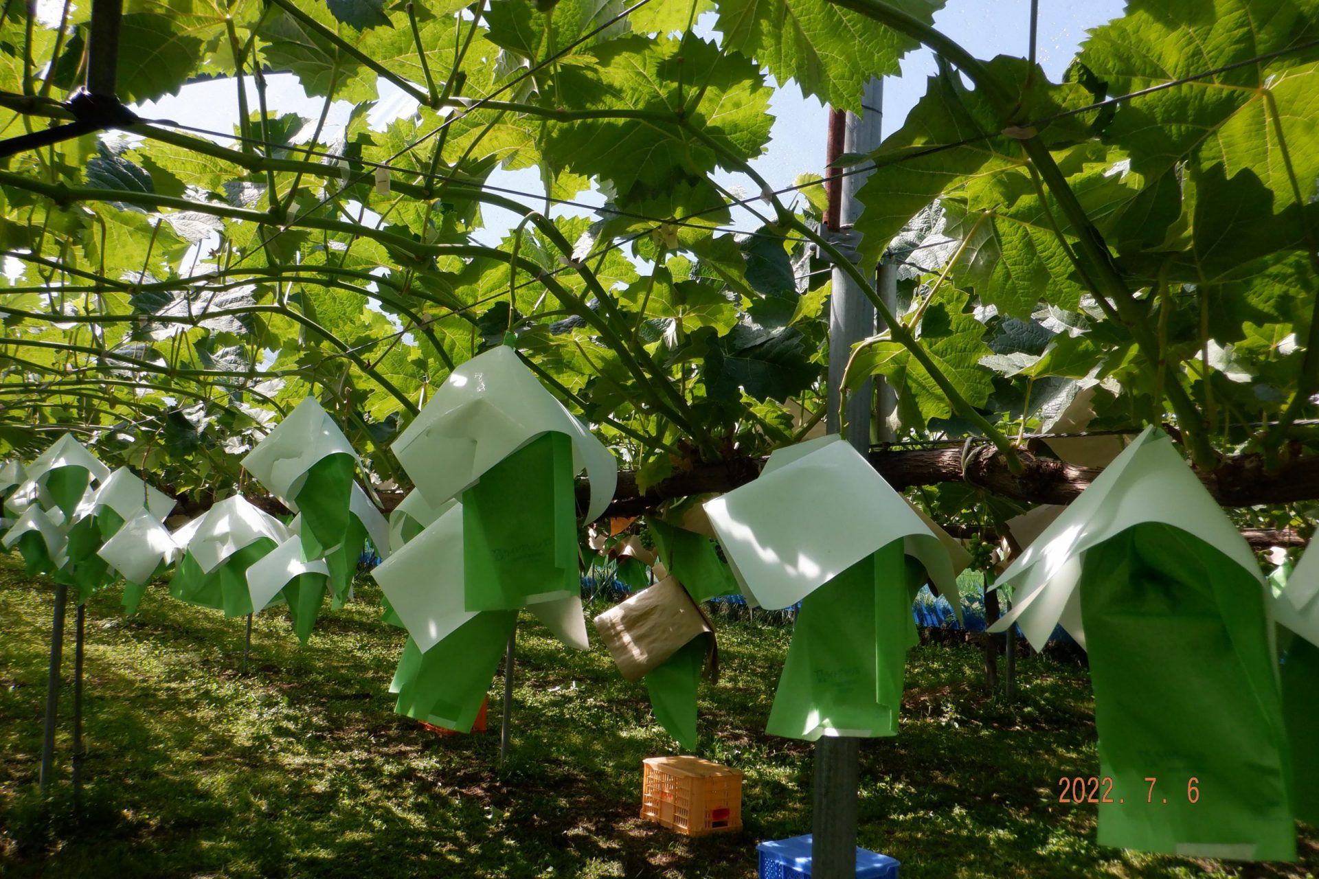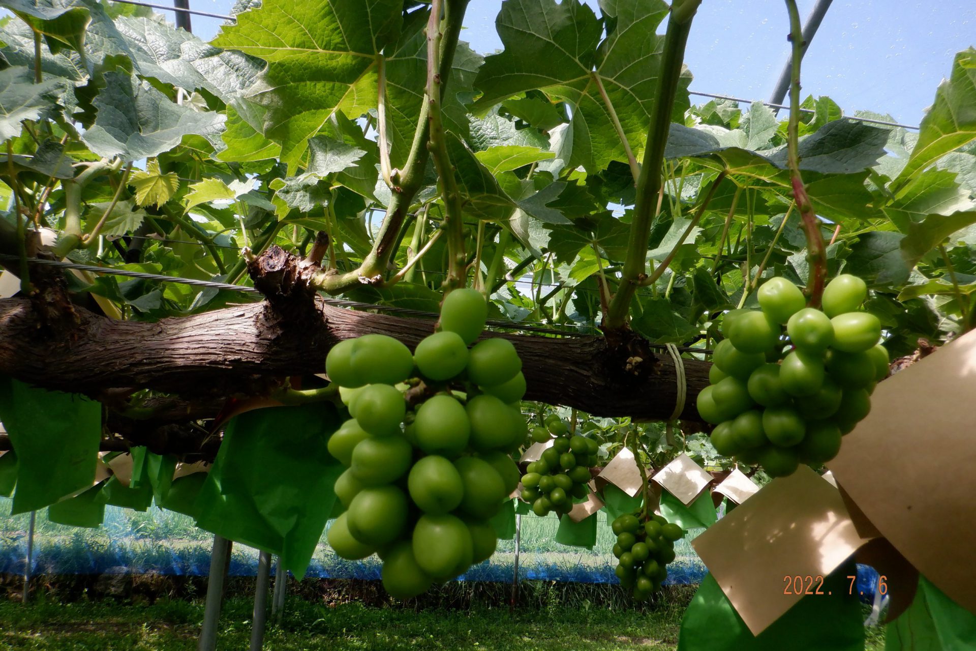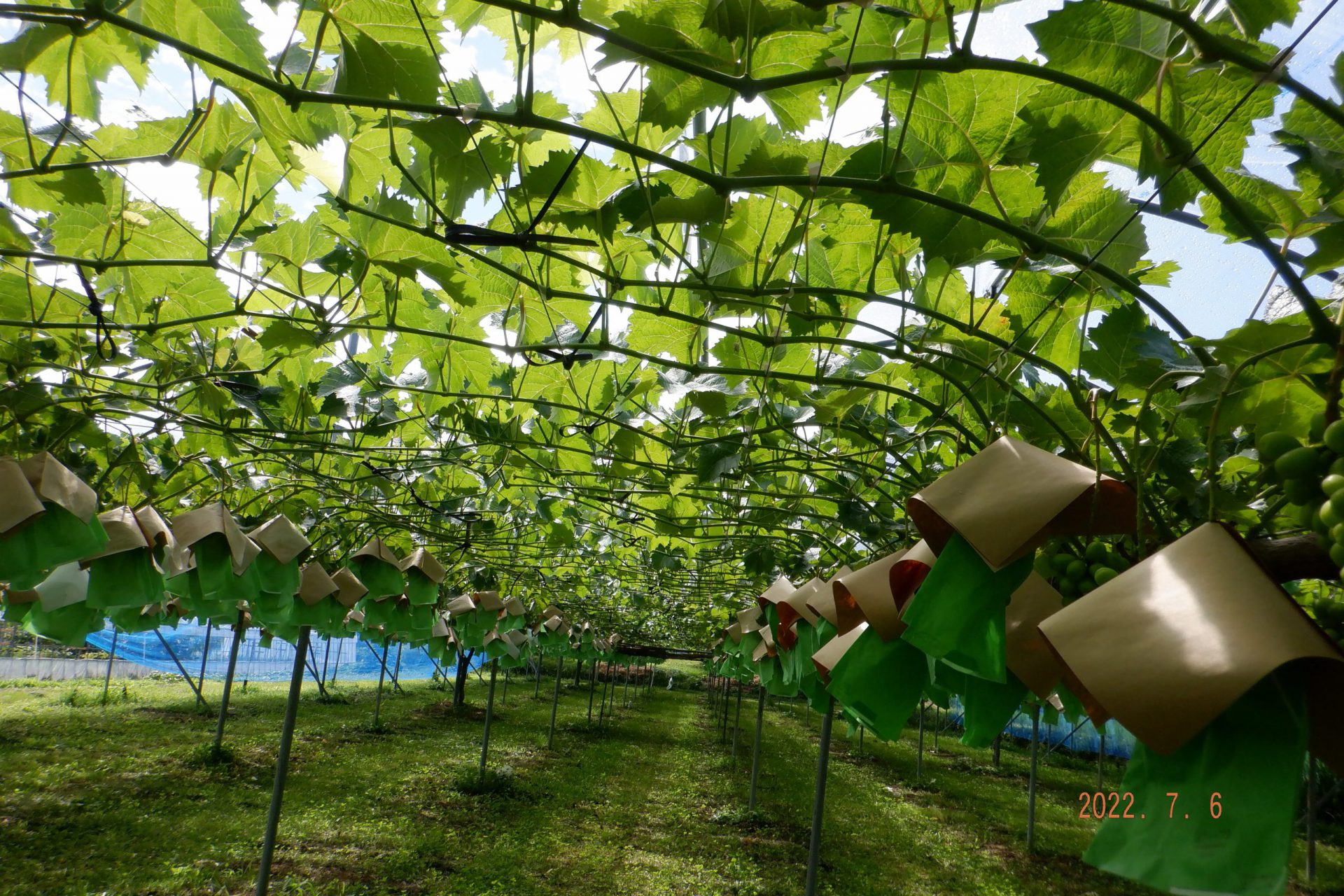 ・毎年夏になるとシャインマスカットの袋かけが始まります。