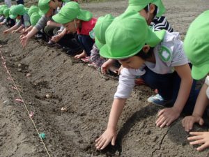「実は、種は・・・。」と芽が出た種イモを見せると「ジャガイモじゃん!!」と驚く子供達でした。