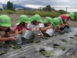 ネギは、一人3本植えました。土をかぶせるのも上手でした。