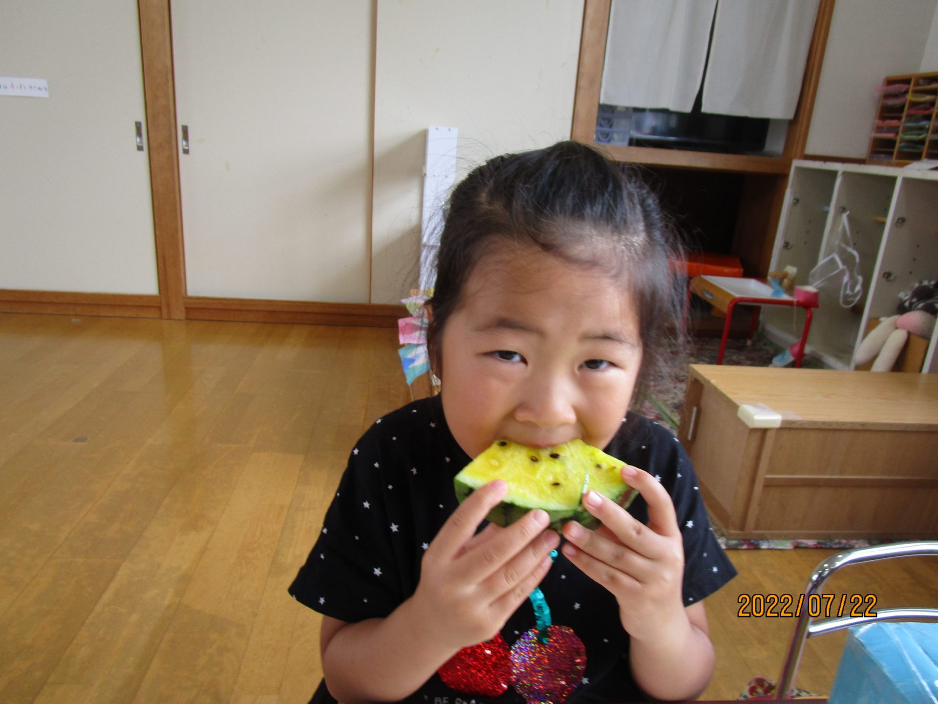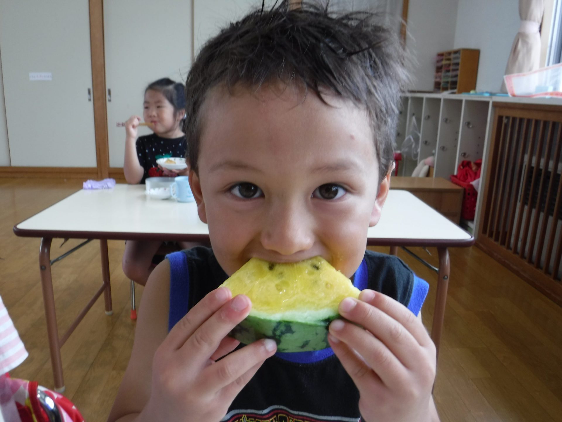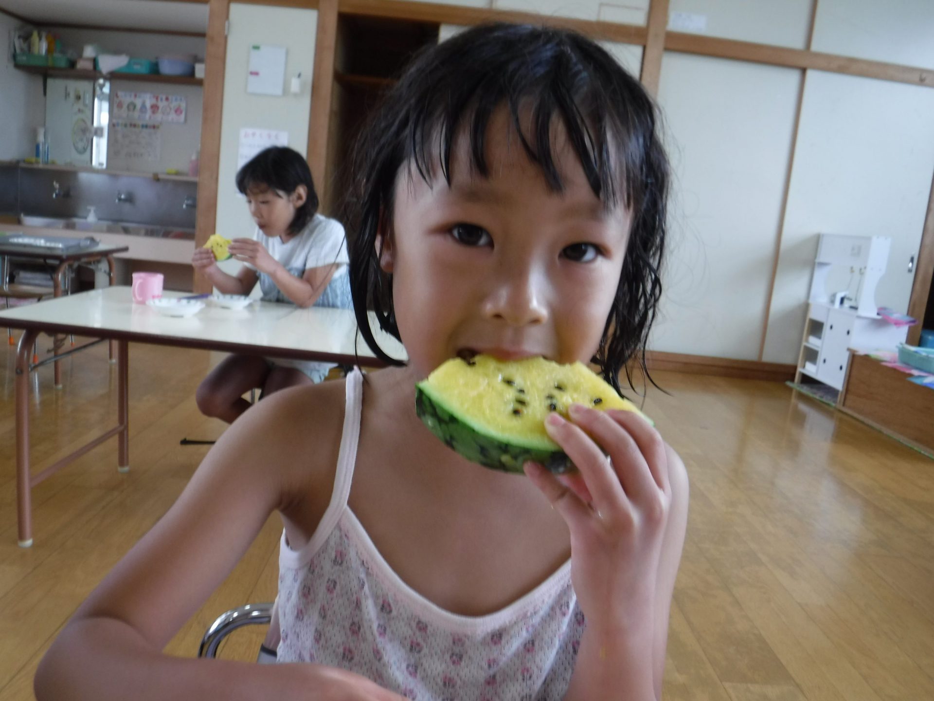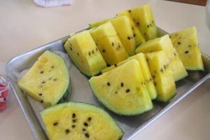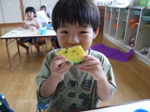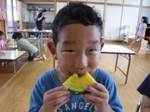 スイカを食べるまでには、水をあげたり、草をとったり、大変だったけど