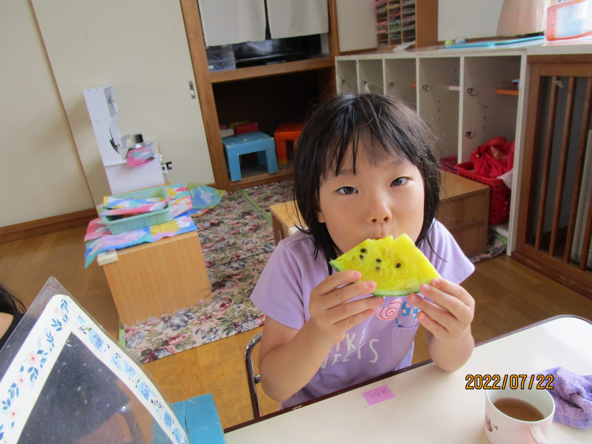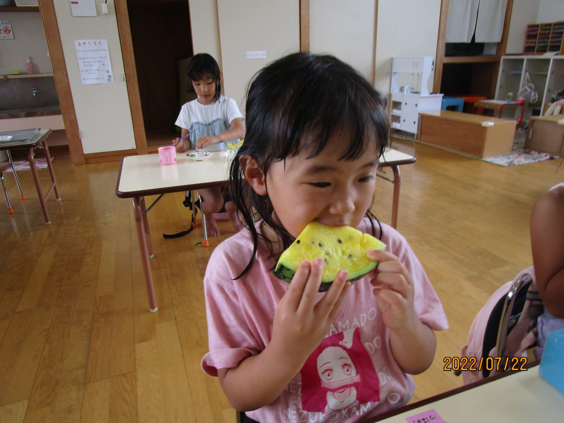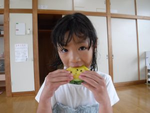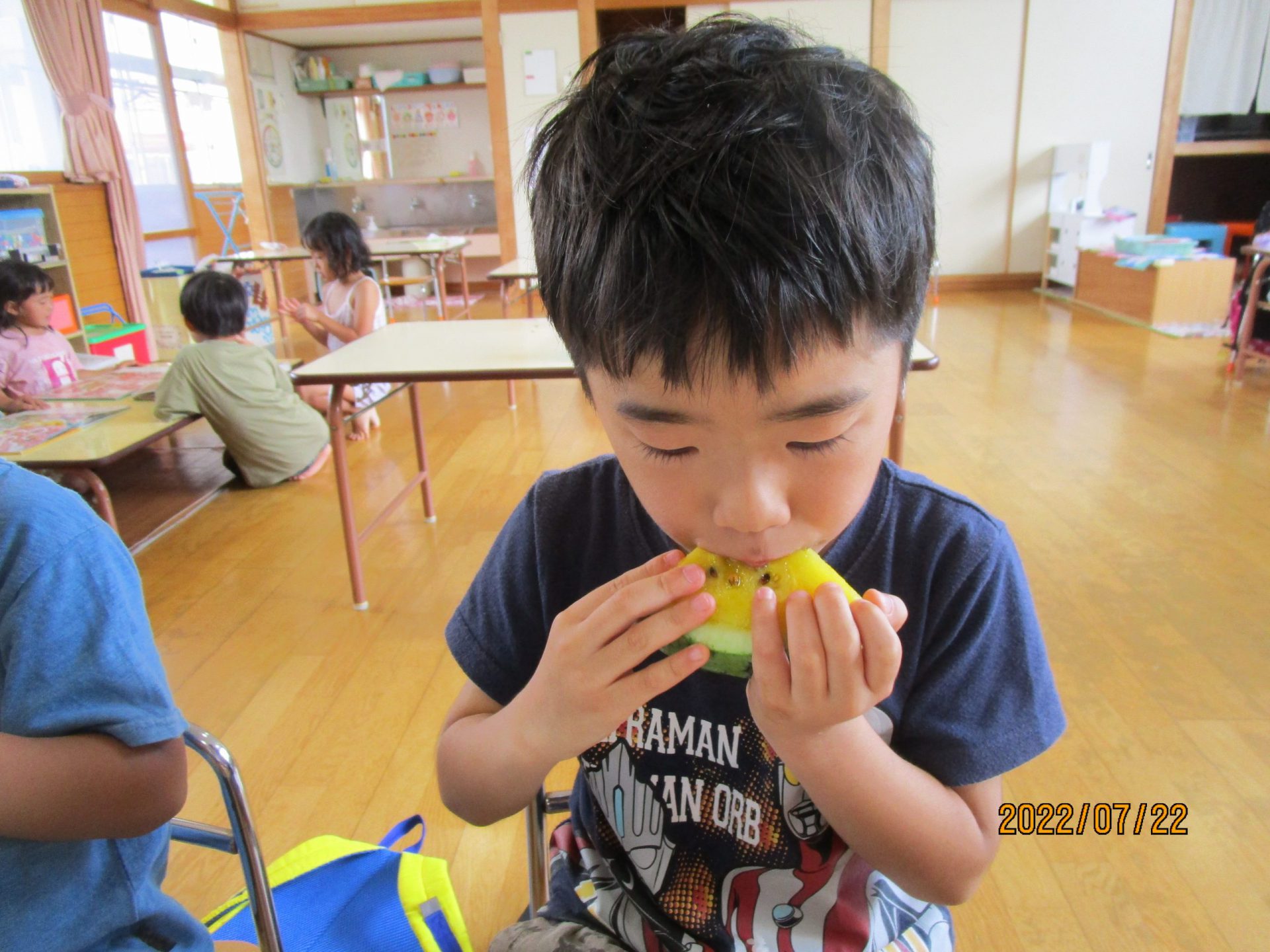 スイカを食べるまでには、水をあげたり、草をとったり、大変だったけど