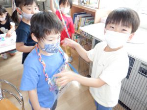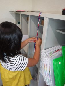 お部屋に帰るとさっそく何かを入れたい年中さん。
