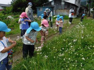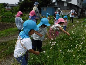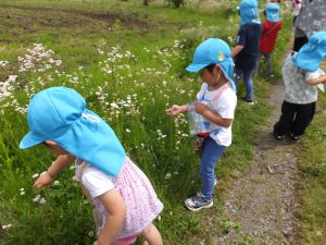 日々の生活の中で、年下の子にとっても優しく面倒見の良い年長さん。少し前(3月)までは自分のことだけだったり、ケンカをしたり、幼さを感じていましたが、今では率先してなんでもやってくれたり、小さい子への教え方、さりげない関わりがとっても上手になってきました。そんは姿を見ていると、昨年からの異年齢の関わりが土台となり継続されているのかなと感じます。