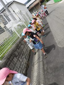 今日のお散歩は年中さんがリードします。