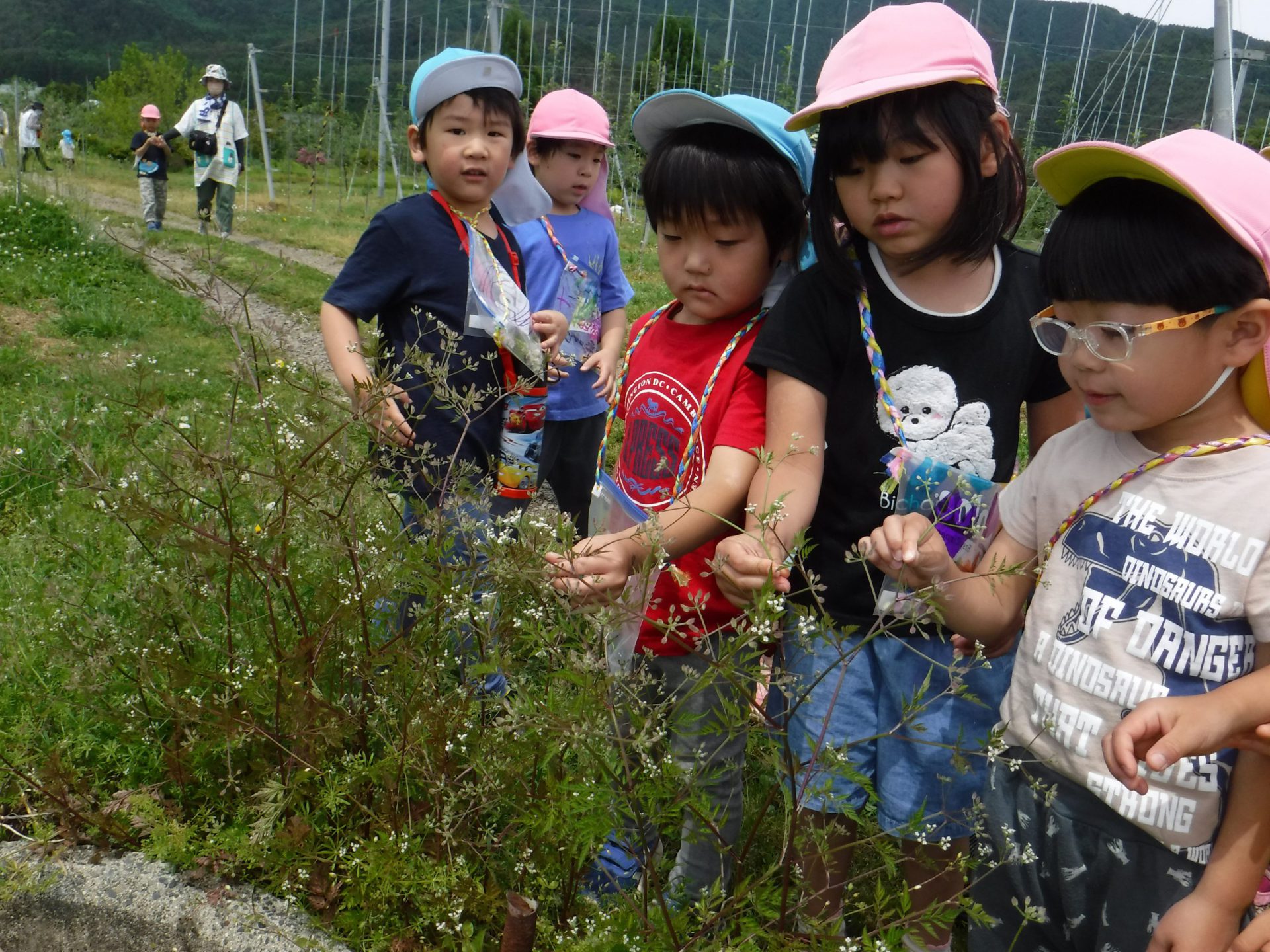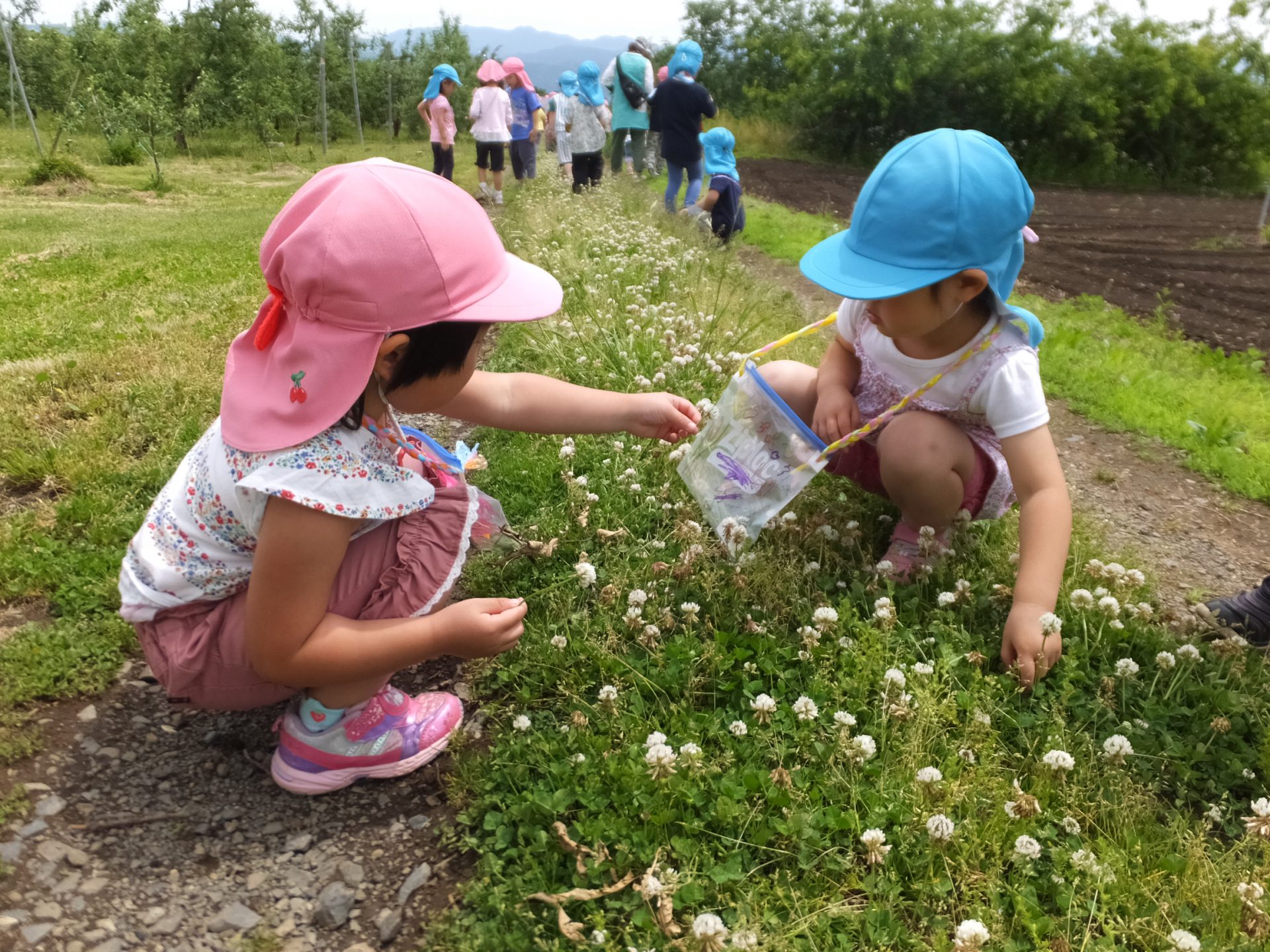 年長さんはこの後予定があり、年中・少で近くのりんご畑まで行くことに・・・