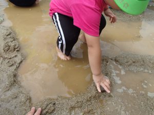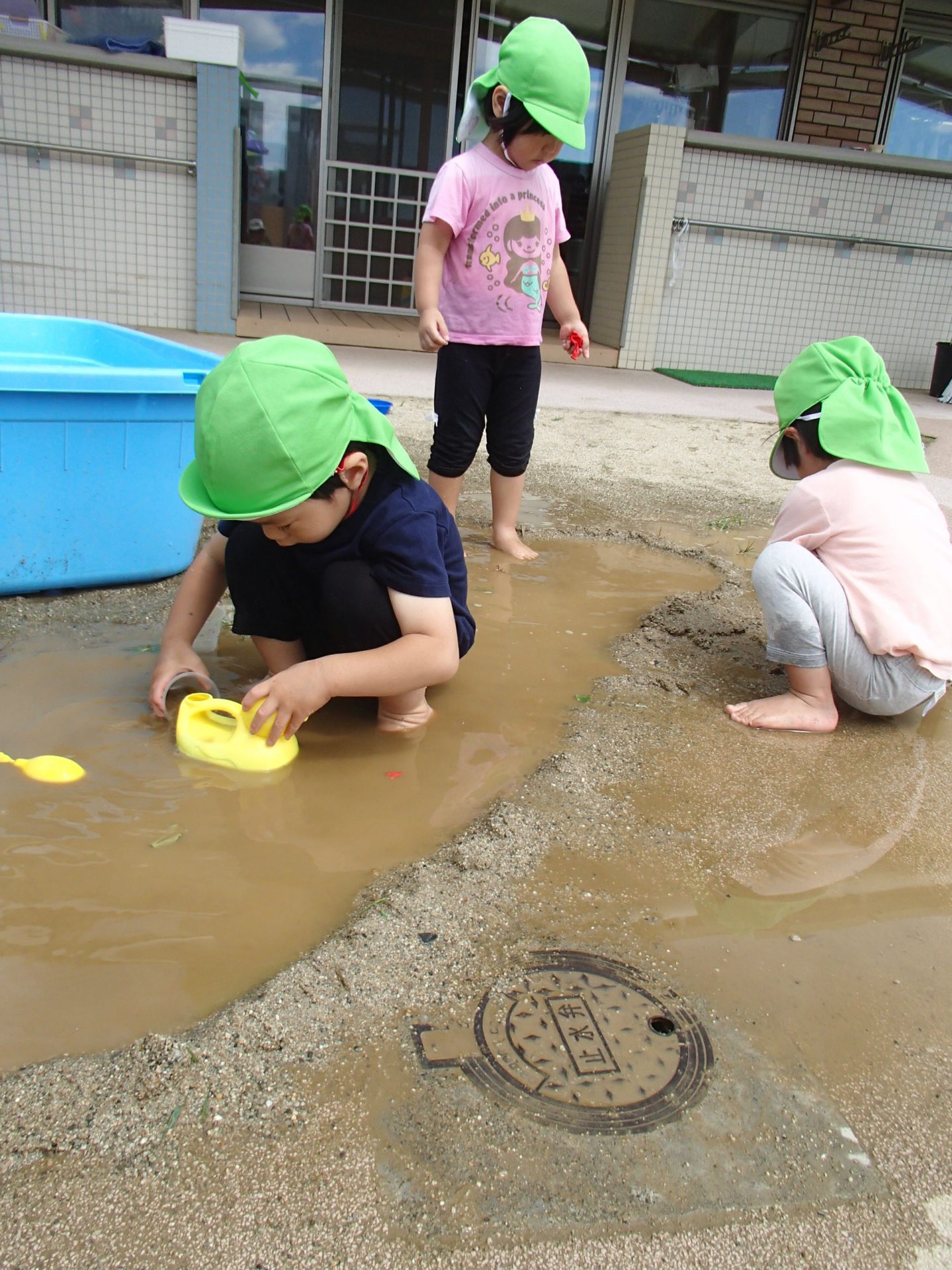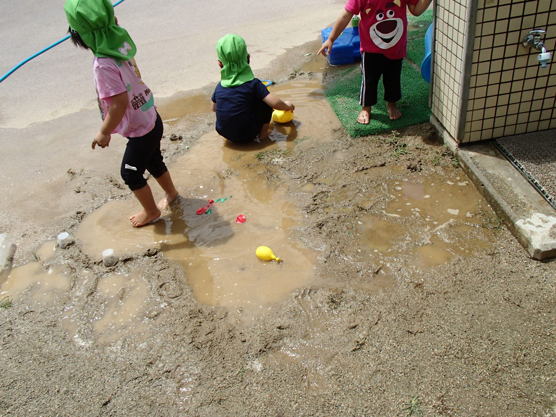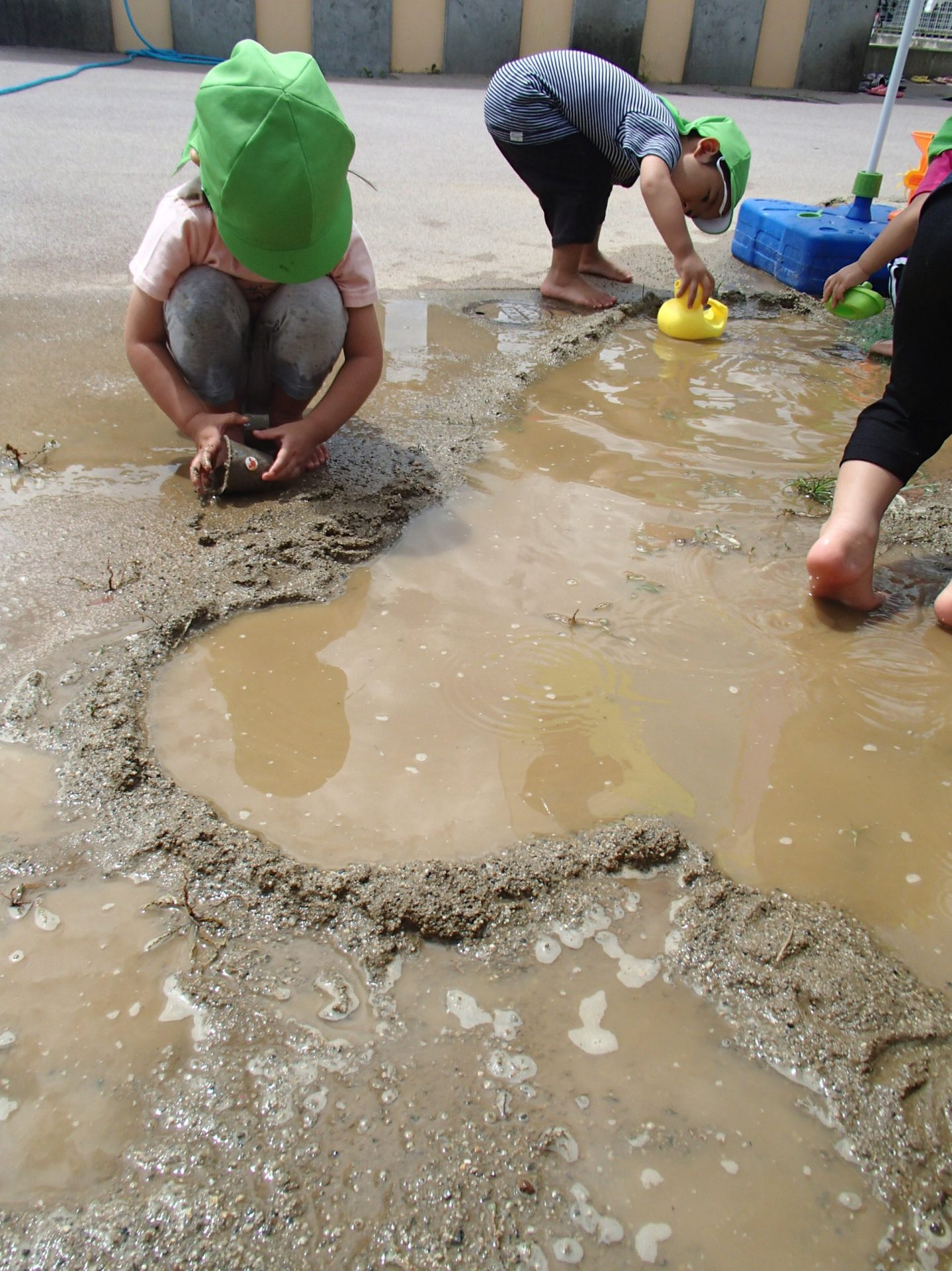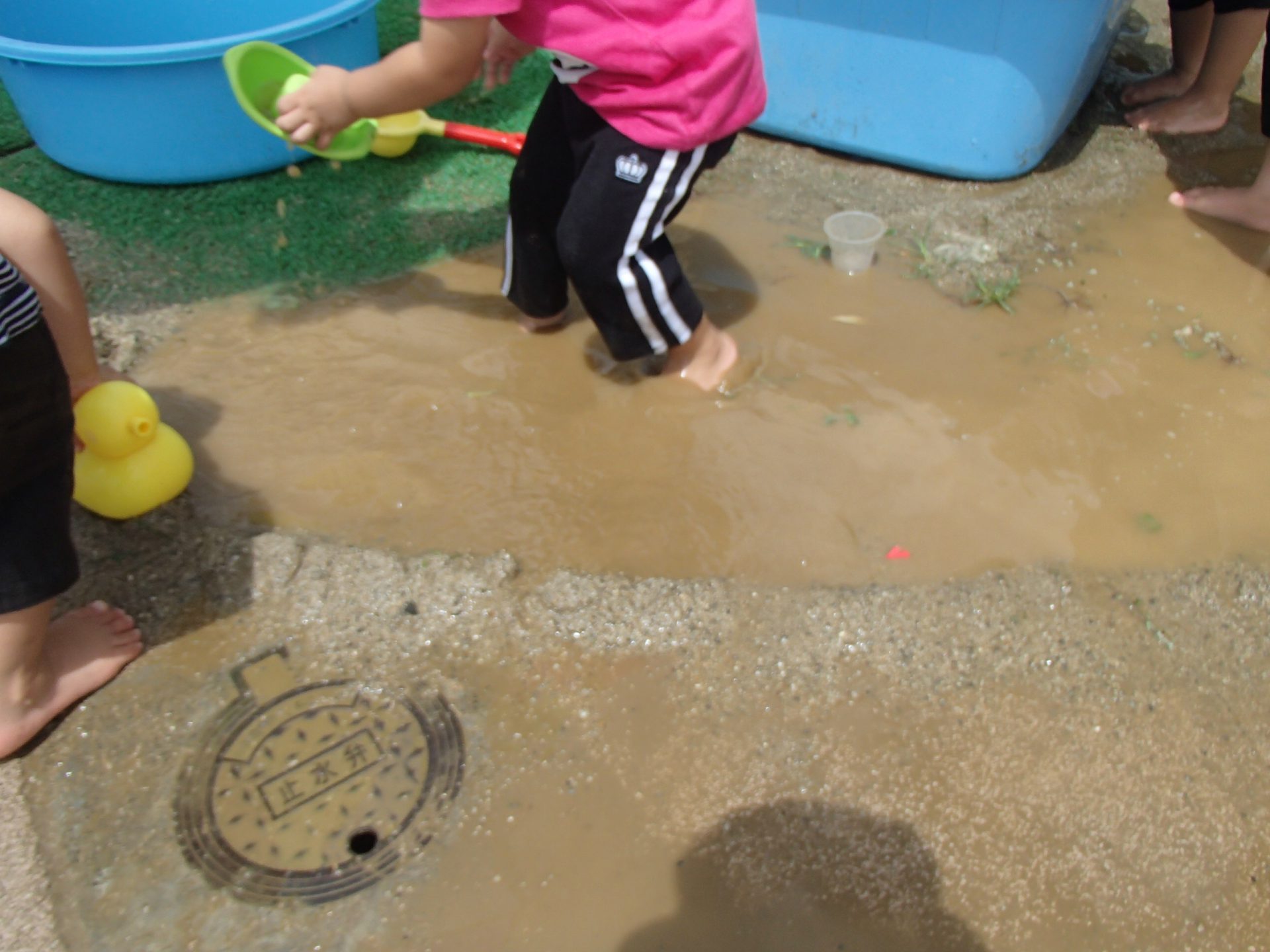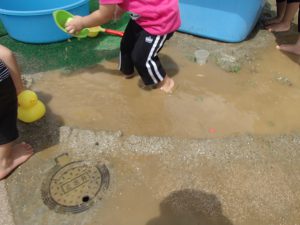 保育士の力も借りて、どんどん広げていくと、、、、更に大きな水たまりに!