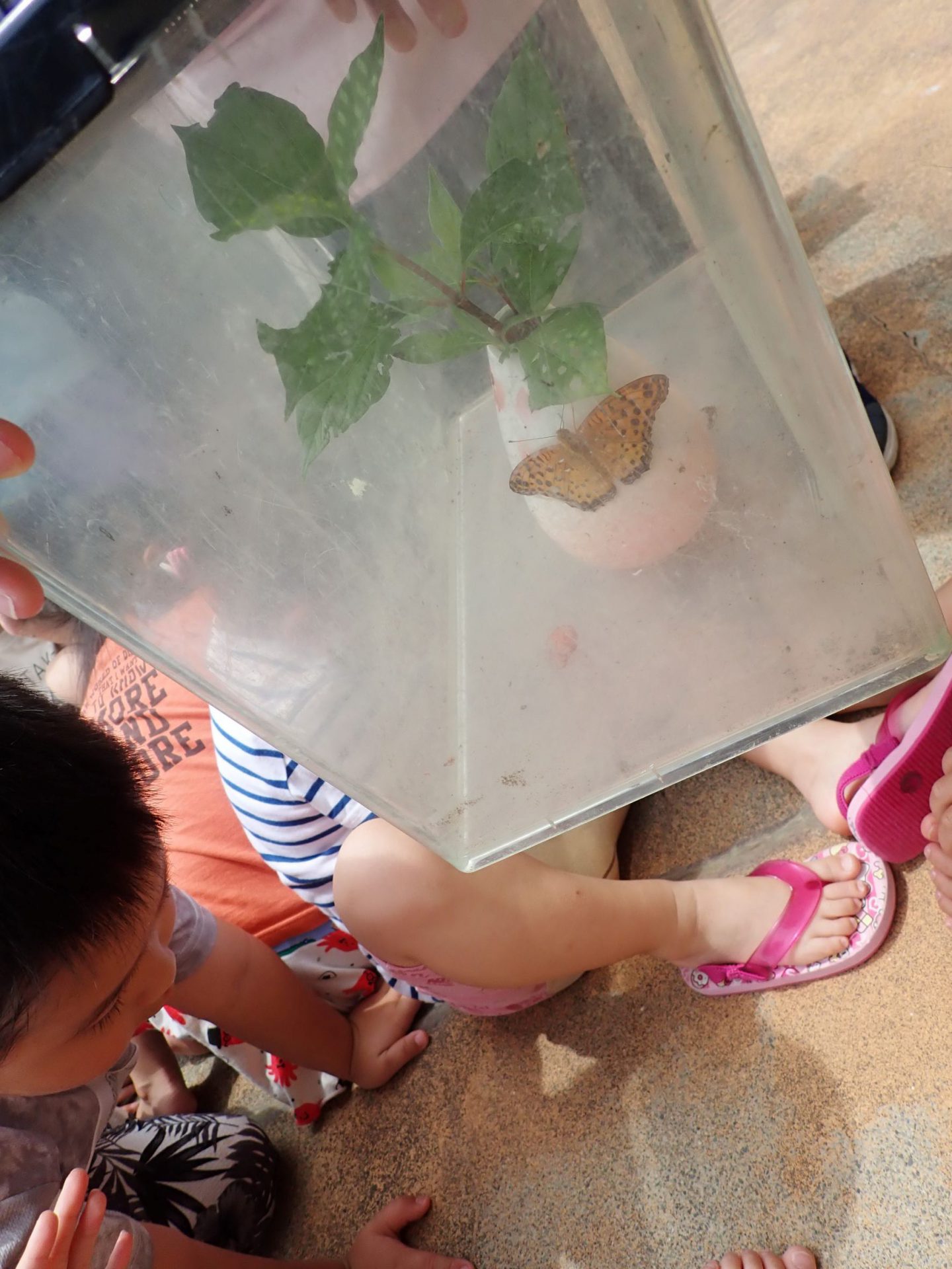 植物・生物 ツマグロヒョウモンまた来てね:長田保育園