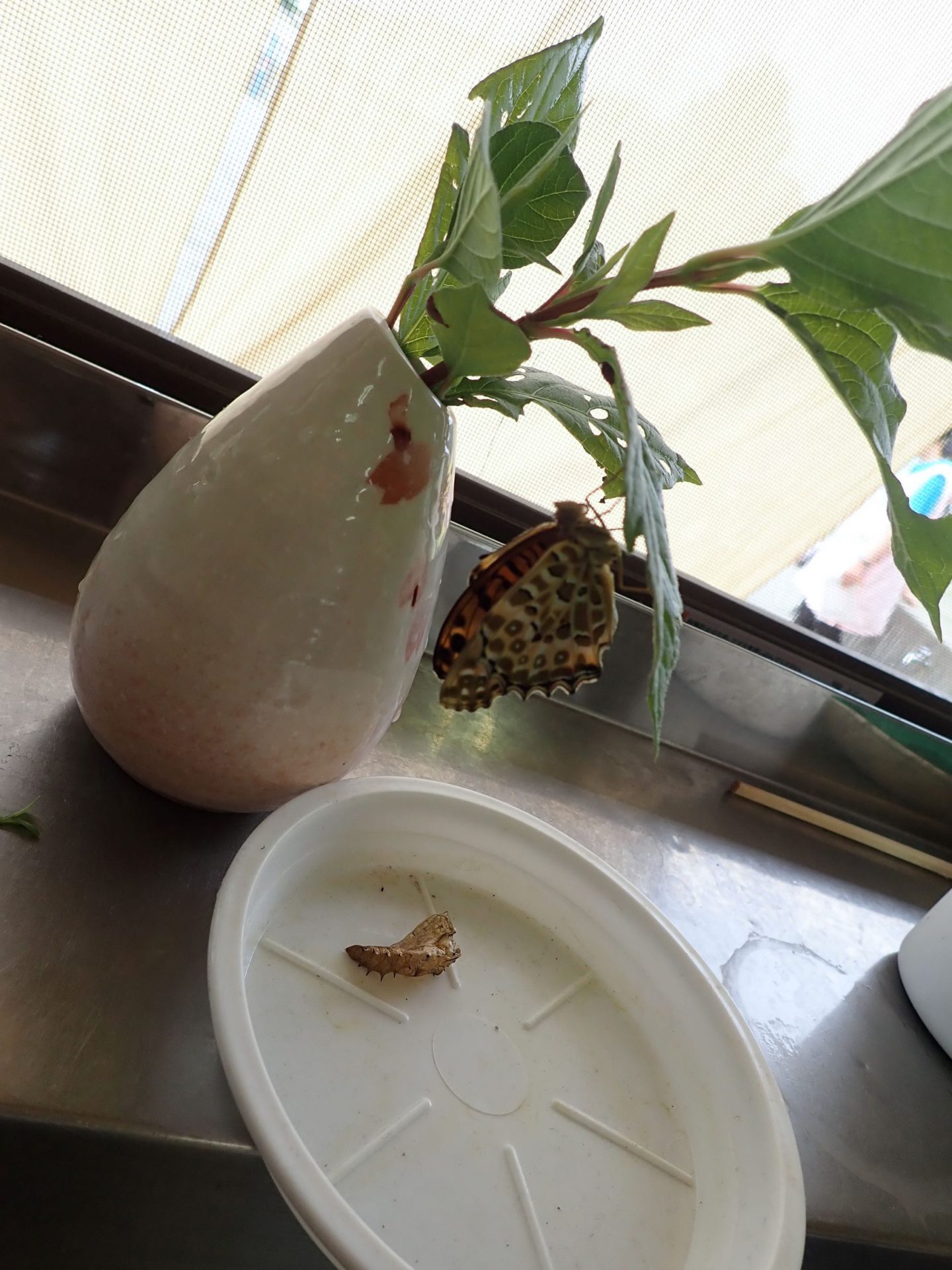 昨日までさなぎだったのに…ちょうちょになったよ。まだ動けないね。