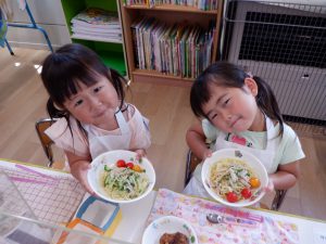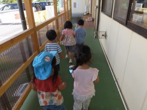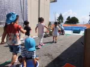 年上のお友達と一緒に生活する中で感じ始めている憧れの気持ち。どんなことでも《うさぎさん・きりんさんと同じようにやりたい!》という気持ちが子どもたちの意欲や経験・気づきに繋がっていくのだなと感じ大切にしていきたいなと思いました。