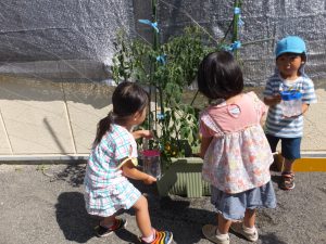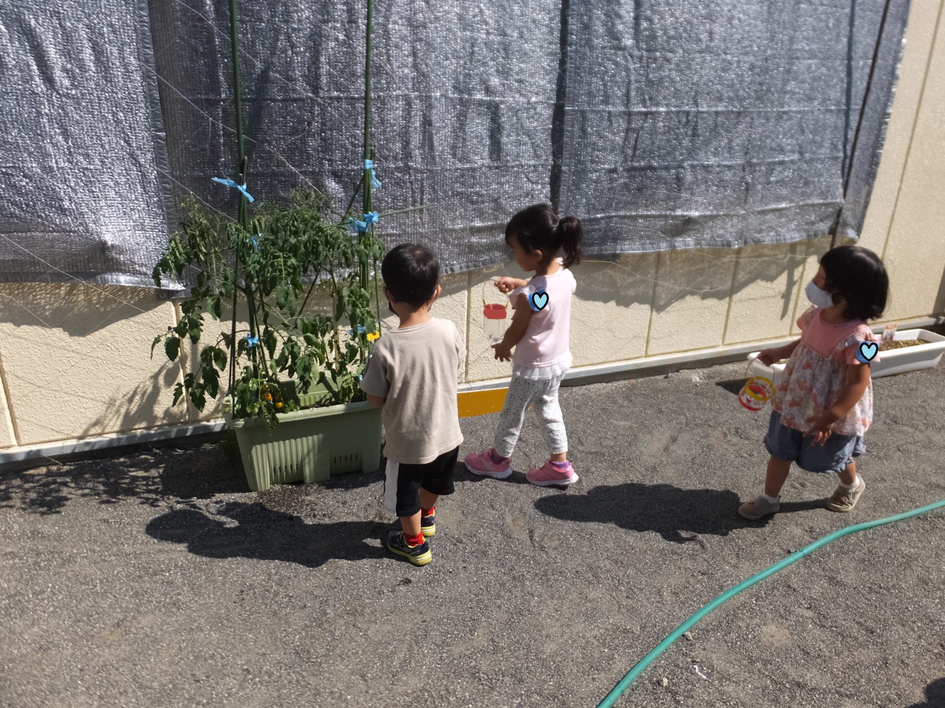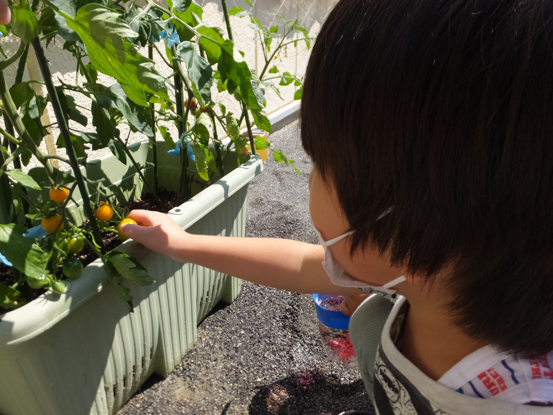 りすぐみで育てているミニトマトに水やりをしてくれました。