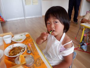 別の日、水やりをしたきゅうりが給食に出た日も「おいしい!」と