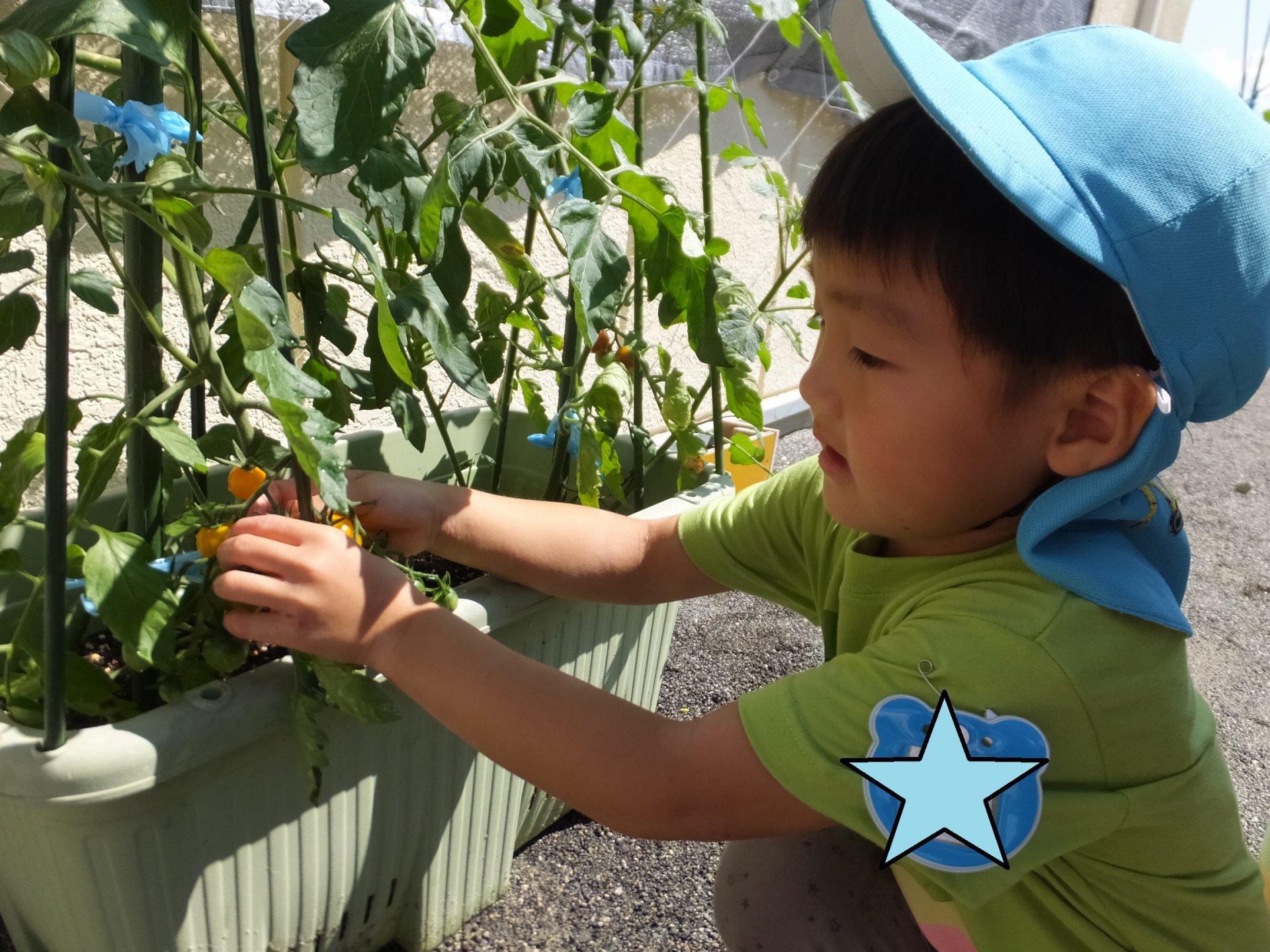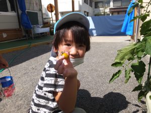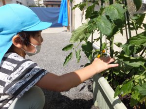 水やりをしていると、「先生!トマトが黄色くなってるよ」と発見!!