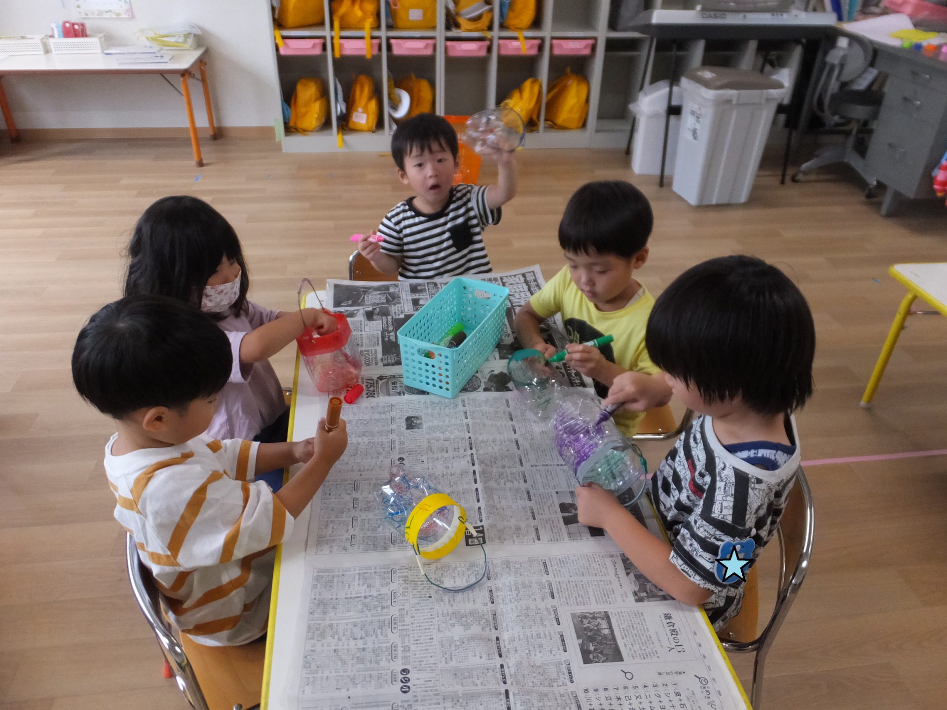 僕たちもバケツで水やりをしたい!とその日はペットボトルバケツを貸してもらいました。