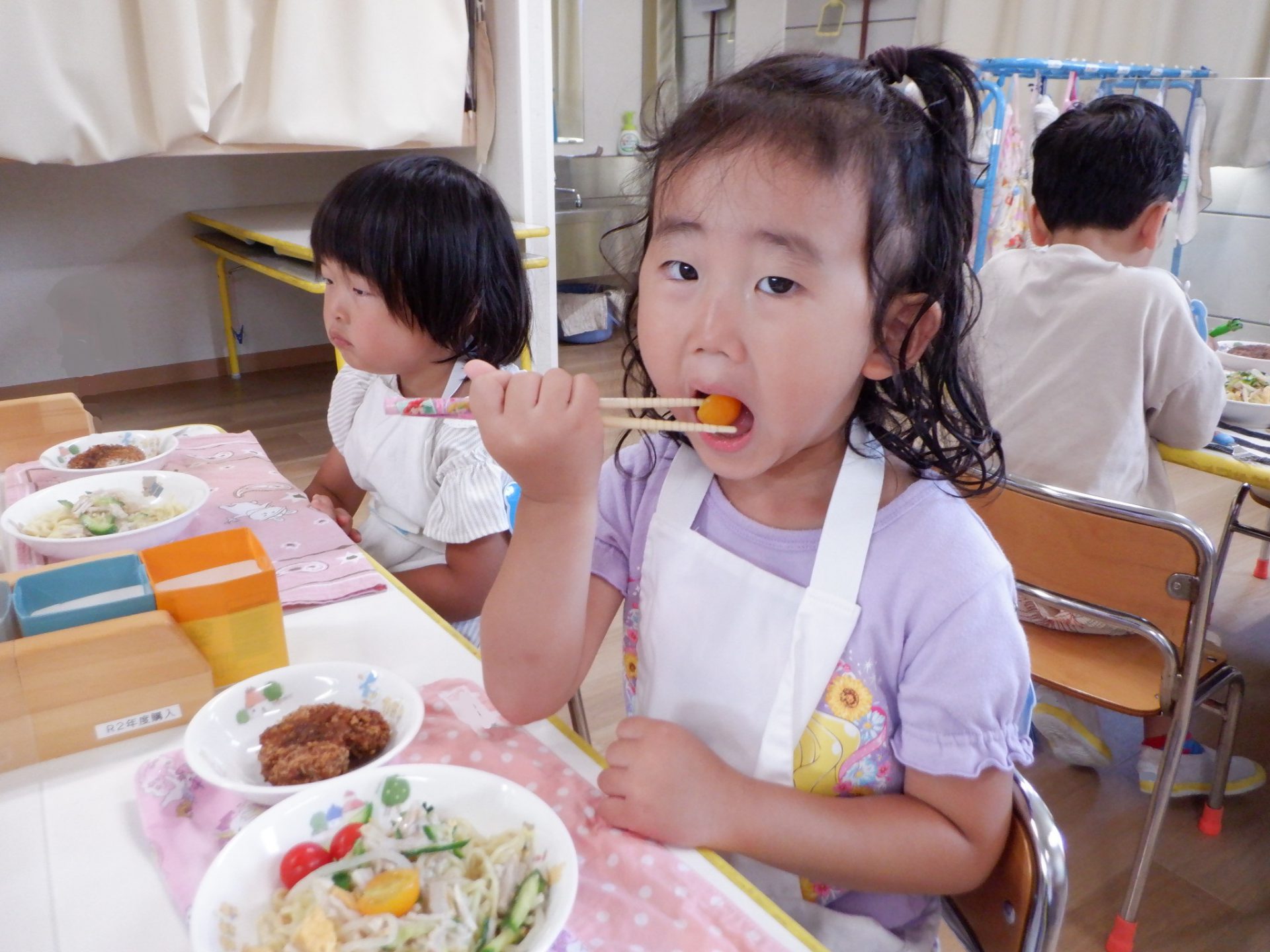 「食べられるよ!見ててー」と大きな口でパクッ‼