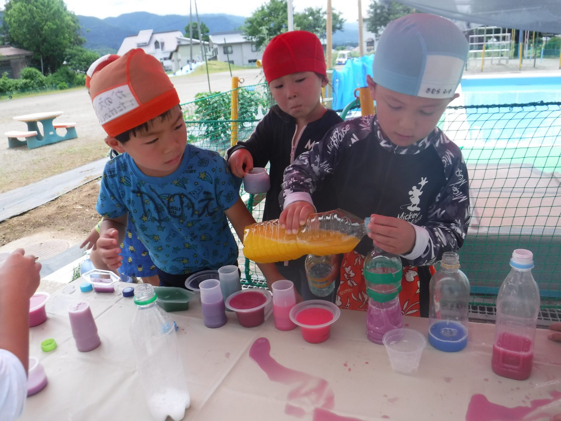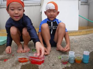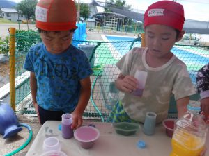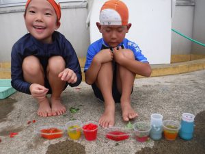 「これ混ぜたら何色になるかな〜」