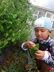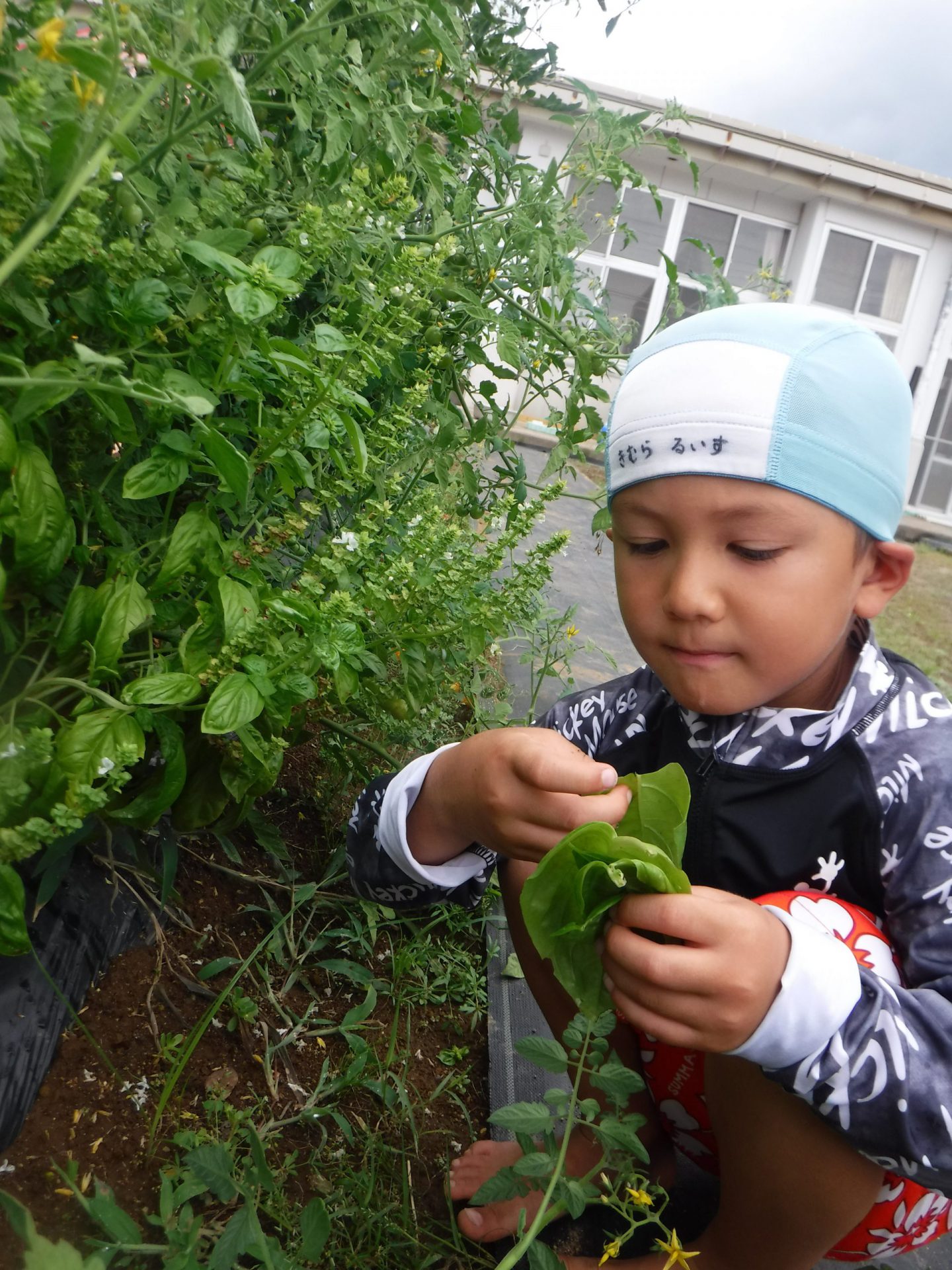 男の子はバジルを一生懸命とっていました