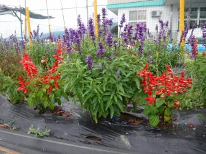 「わたし覚えてる! 赤いのがサルビアで、紫のがブルーサルビア!」