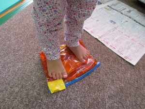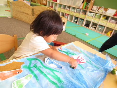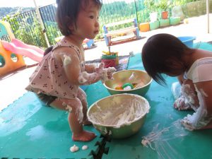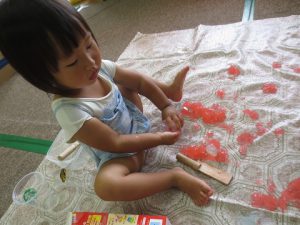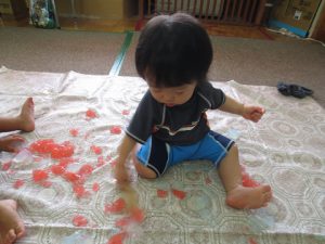 0,1歳児は様々な感触遊びを楽しんでいます。