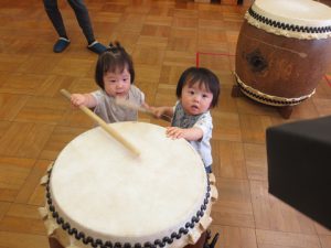 みんなが大好き虫倉太鼓。年長さんがたたく音が聞こえてくると思わず踊っちゃいます。