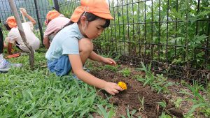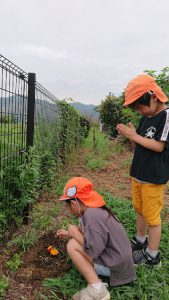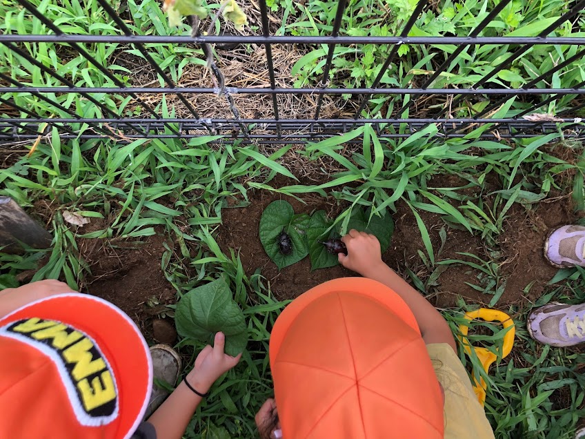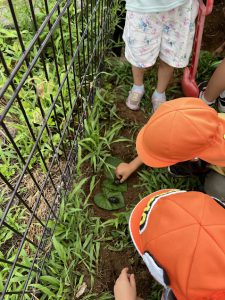 そこで、年長さんに「カブトムシの家族増やすために、自然にかえしてあげるってどうかな?」と提案してみました。「結婚して家族が増えるってことでしょ!」「いいよねー!」の声で、カブトムシを自然にかえすことになりました。