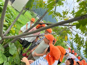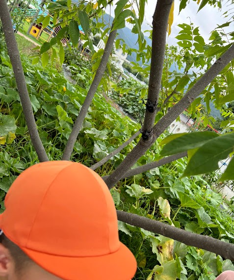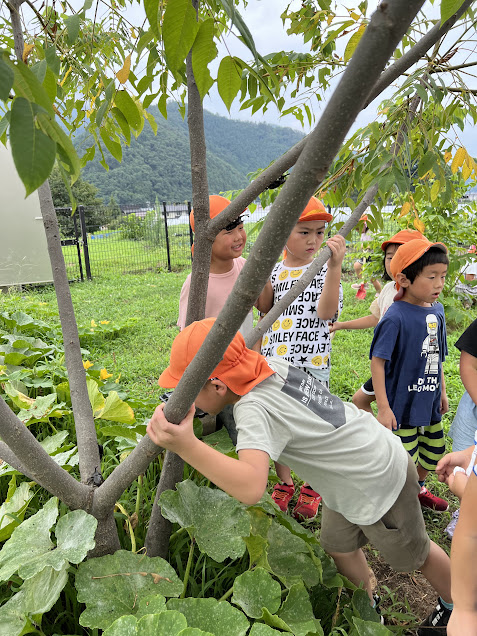 「あっ!!木から落ちちゃった!!!」みんなで心配しましたが、カボチャの葉っぱに助けられてセーフ。ホッ♡と一安心。良かったね。
