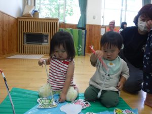 ひよこ組(0・1歳児)のお友だちも魚釣りに夢中です。