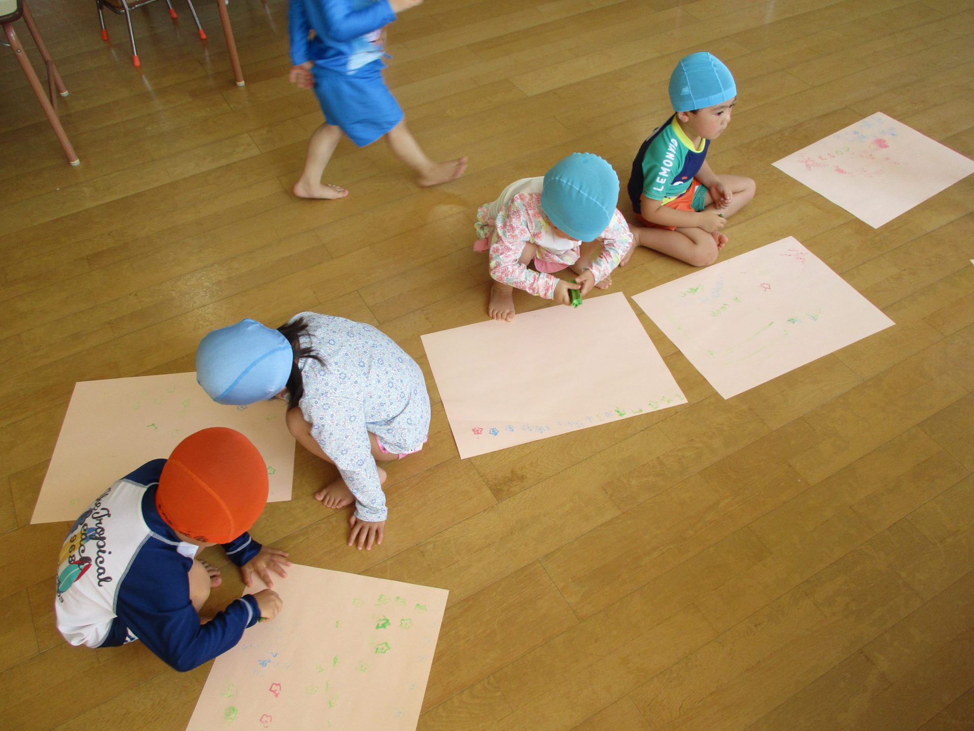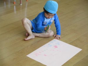 「次はね、、ピンク!」 「ぼくも赤にする!」 「青色塗ってきたよー」