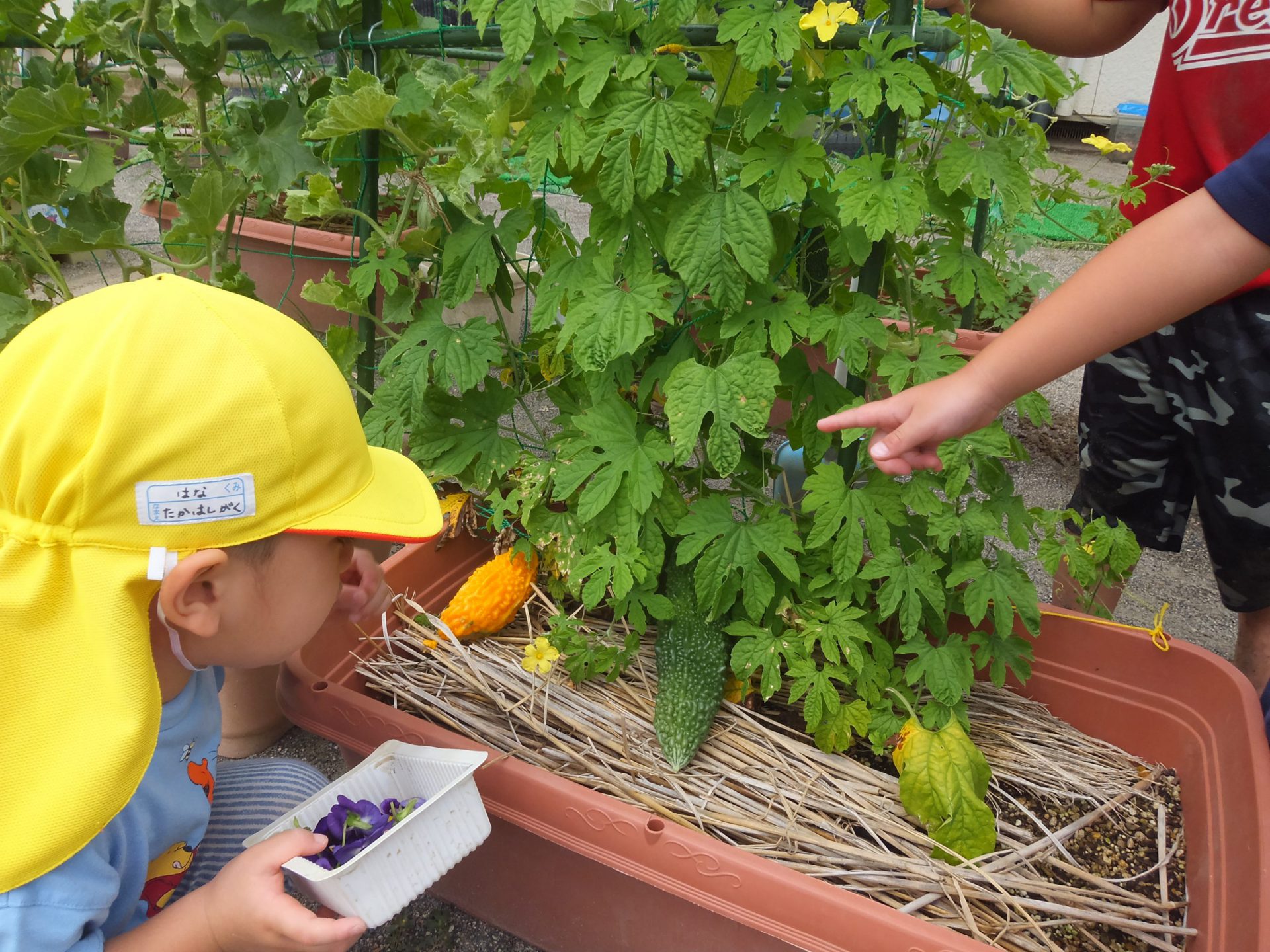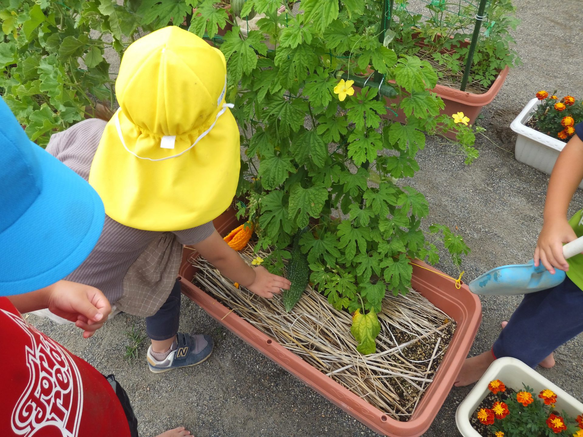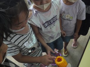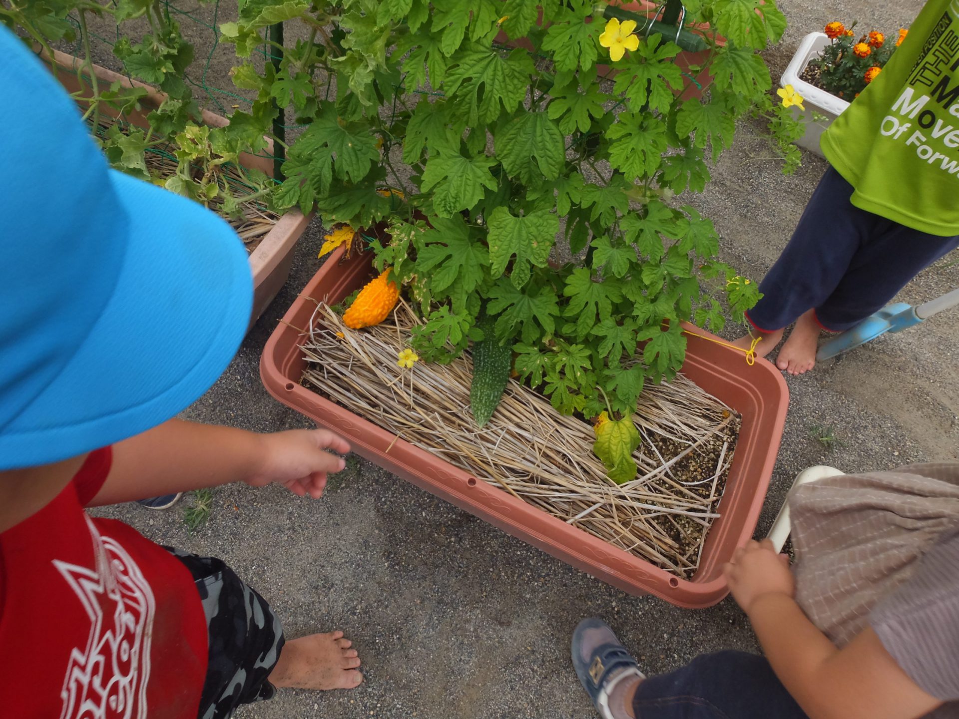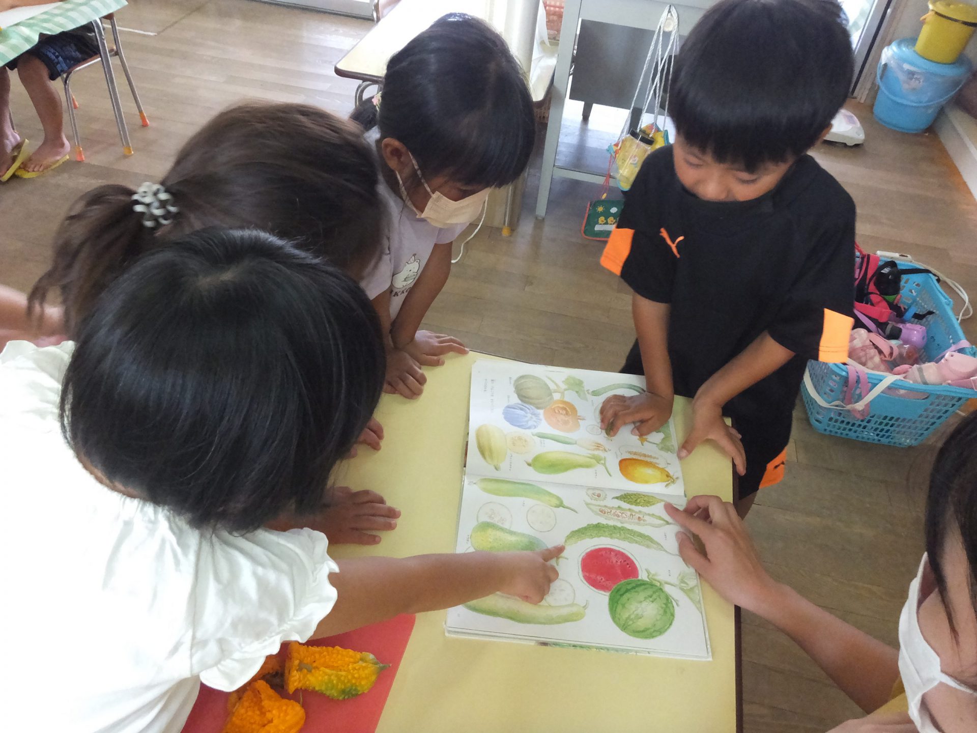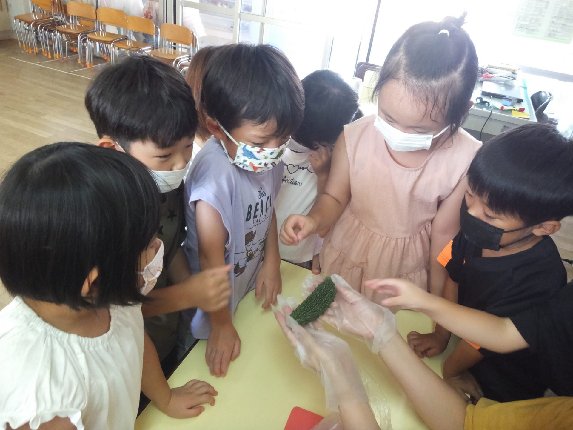 ゴーヤを見た子どもたちの反応はさまざまであり、子ども達の「なんでだろう?」「不思議だな」「試してみたい」「調べてみよう」の思いを大切にしました。