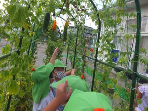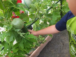 「こっちには、メロンがあるよ。」「ゴーヤもあった!」