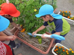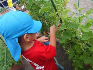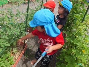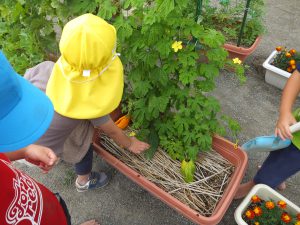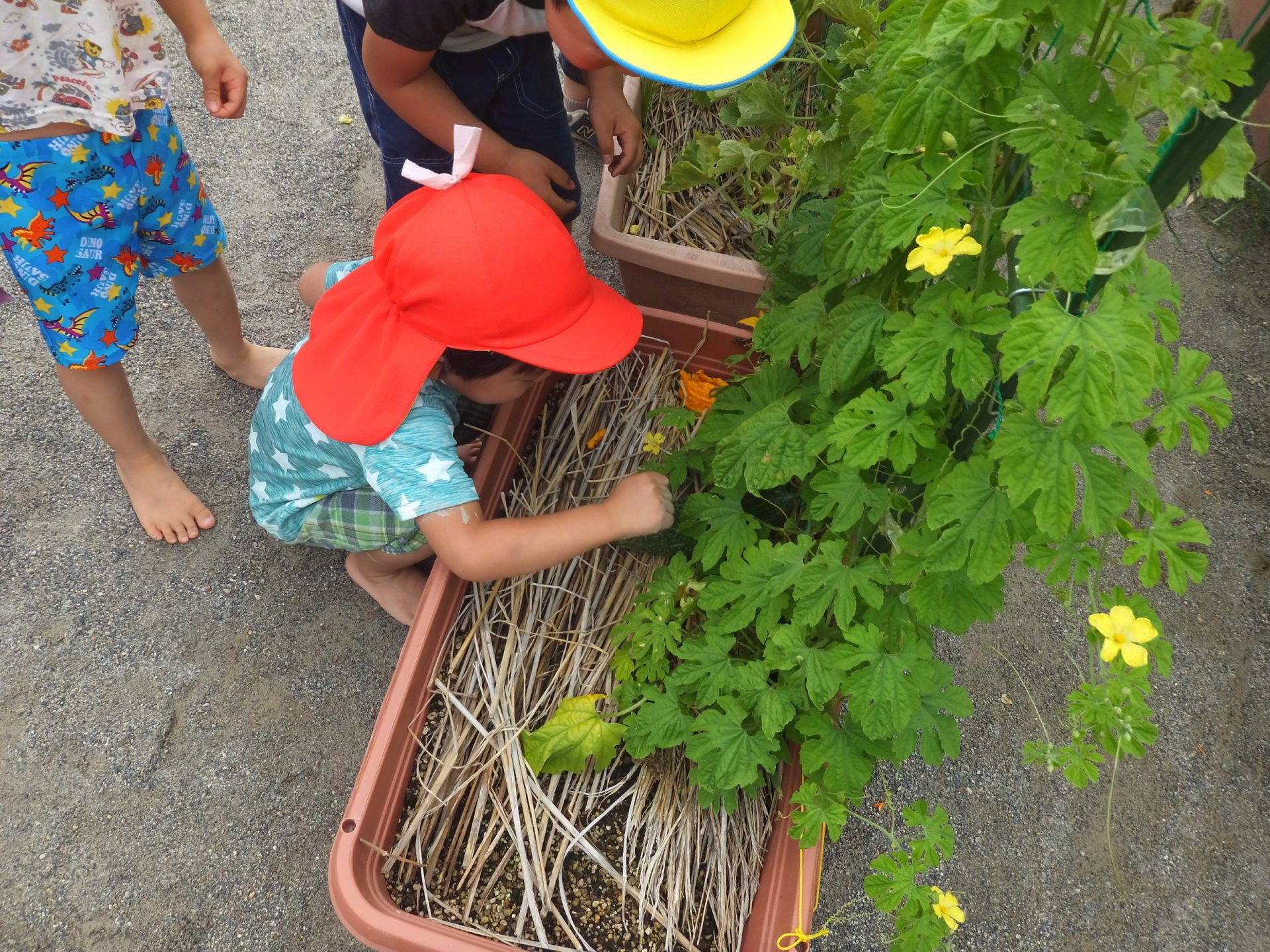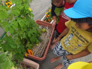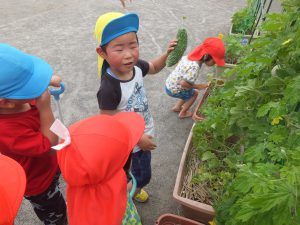 青木島保育園の園庭には、いろんな野菜が植えてあります。
