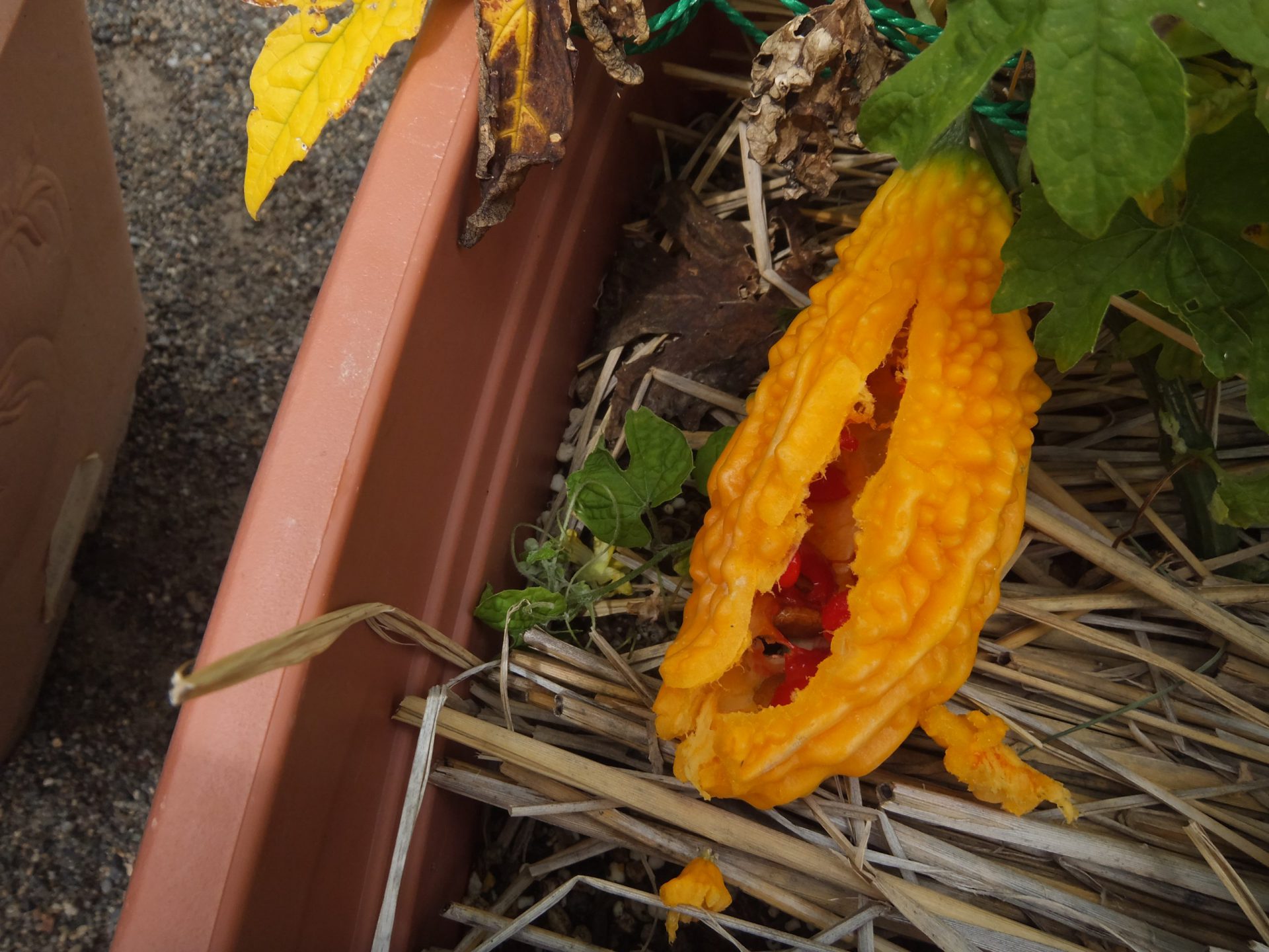 ・黄色のゴーヤは柔らかい。中身は赤い。トマトのにおいがしたよ。