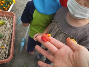 とっても触れしそうな表情のDちゃん。この種は、大切におうちにもって帰りました。