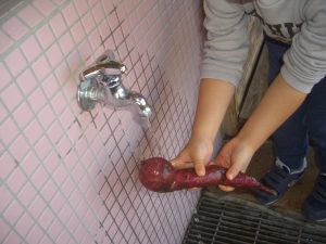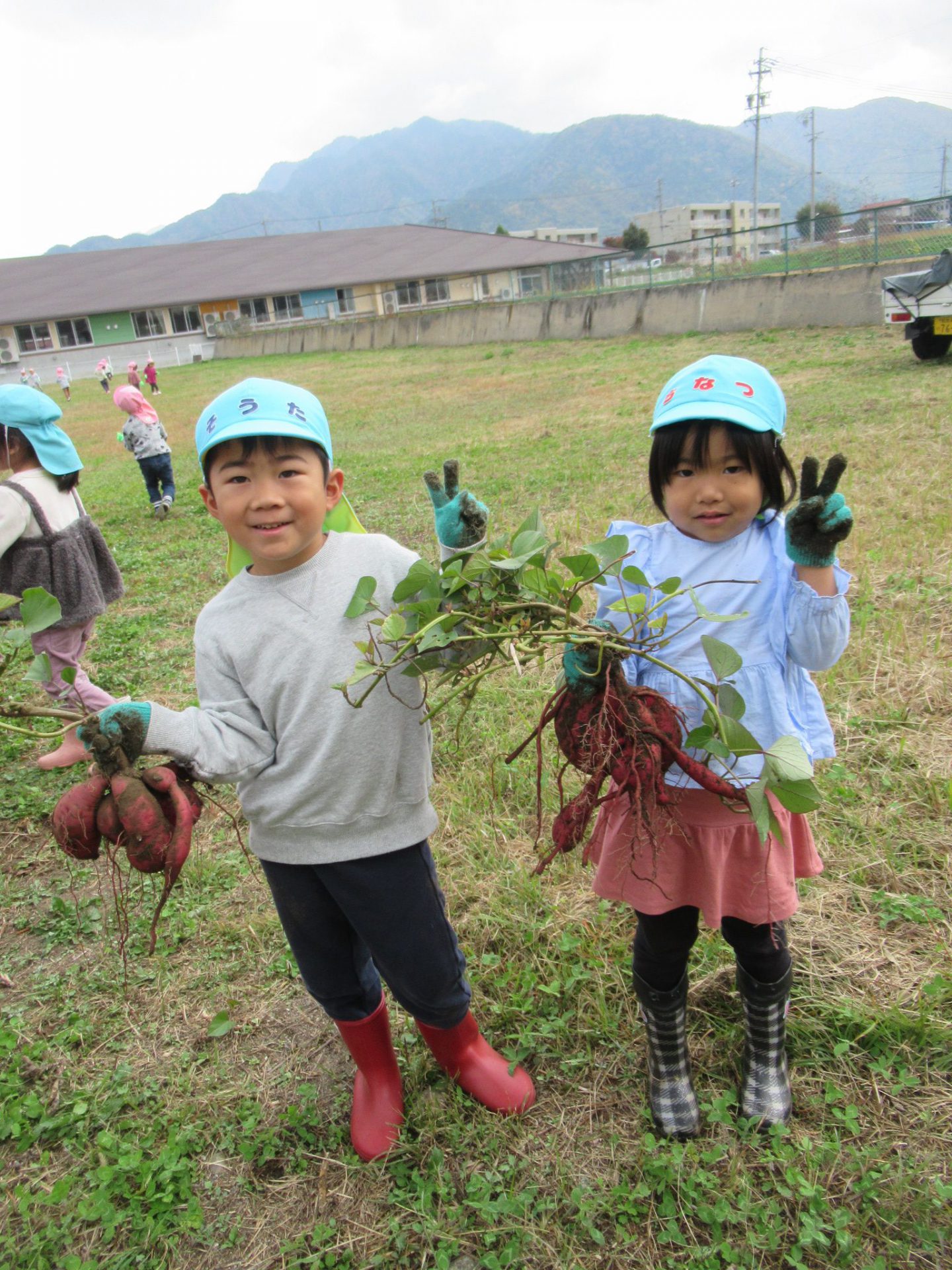 大きく育つよう、水くれや草取り、じいじ先生と頑張って秋には大きなお芋になりました!