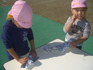 年長組さんのやり方を見て年少さんも丁寧にできました!