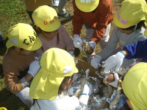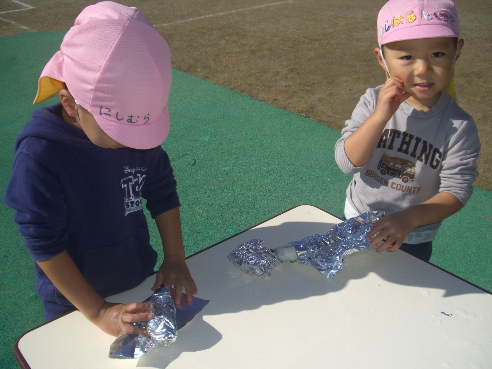 ・焼き芋作りを通して、食材の色や形、感触を知り、変化や発見を楽しむ経験をしてほしい。