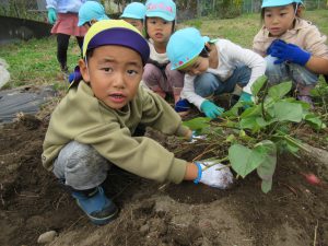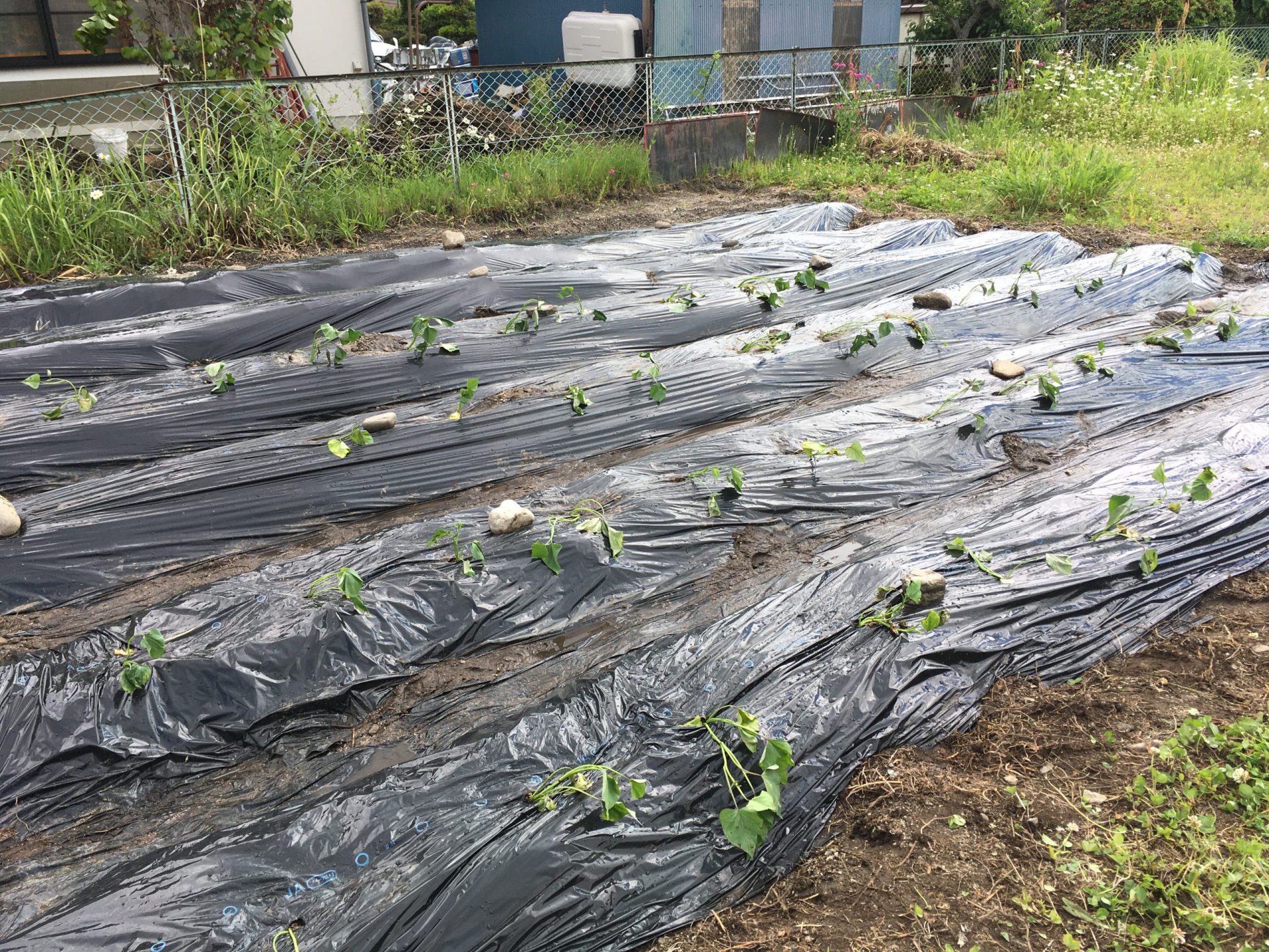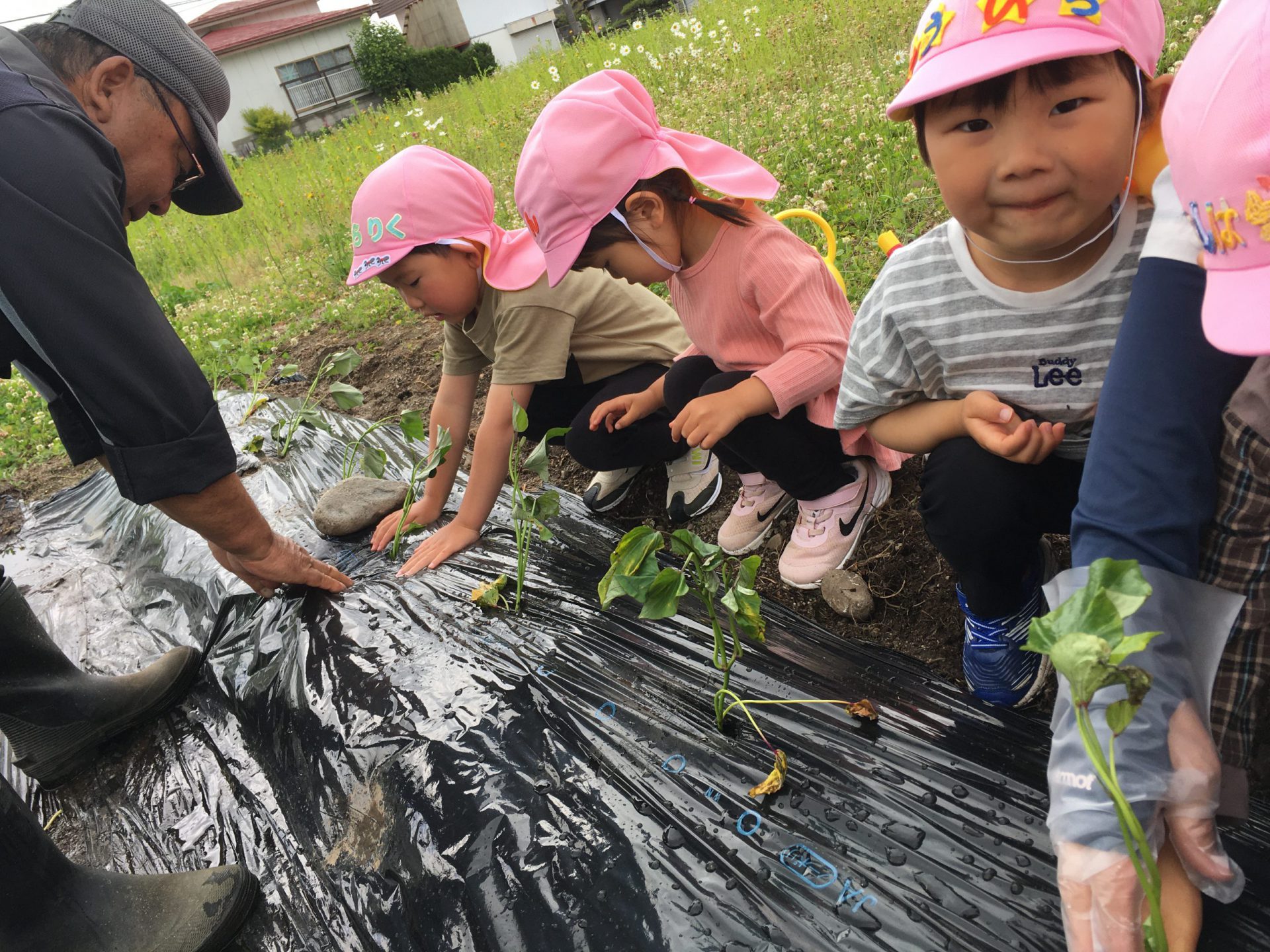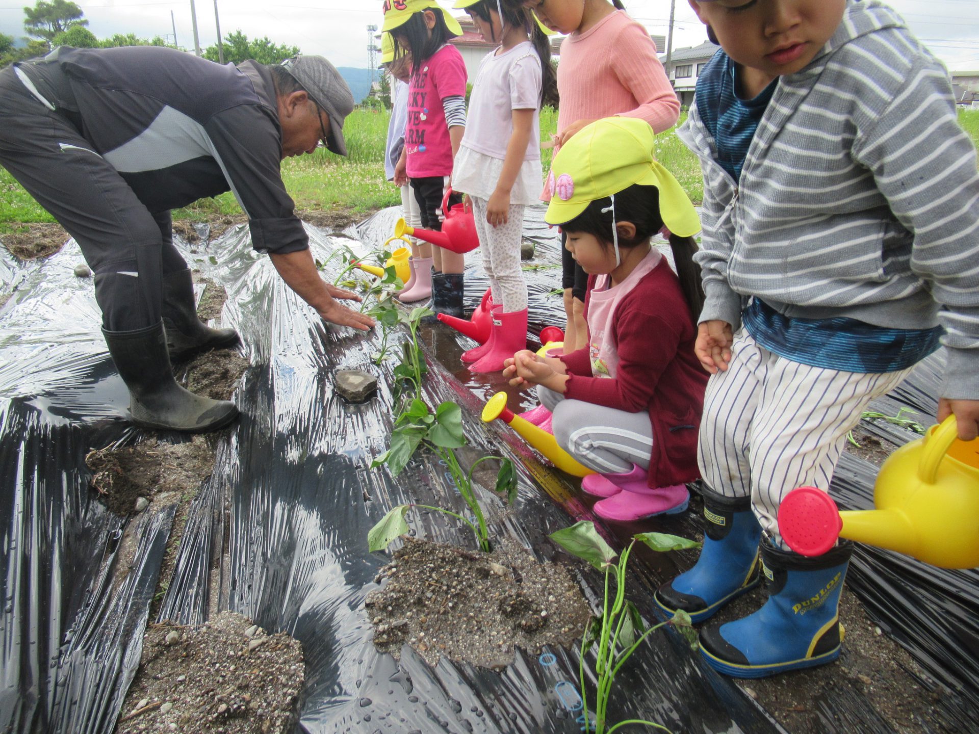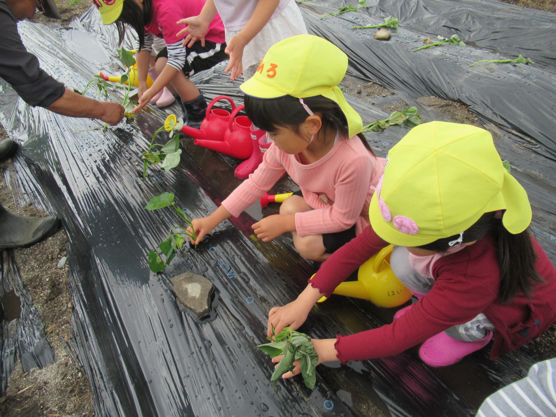 新しい畑では美味しいお芋を育てて今年はみんなで焼き芋をしよう!とたくさんの苗を植えました。